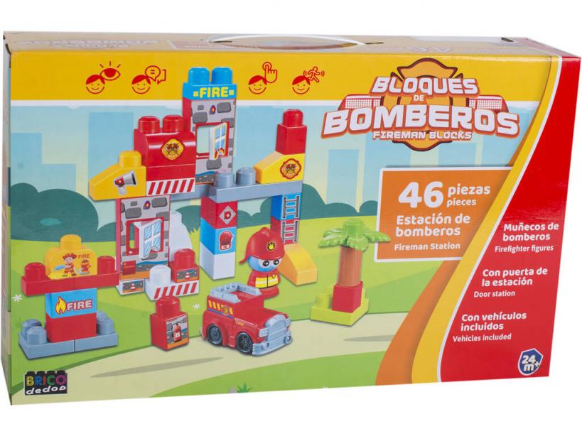 ¡Conviértete en un bombero más gracias a este nuevo pack! ¡Disfruta con el divertido Bloque Construcción Estación de Bomberos 46 Piezas! Consigue este mágico set lleno de bloques, con los que los más peques de la casa podrán crear una estación de bomberos llena de detalles, colores y sorpresas como una puerta que se pude abrir y cerrar. Además, junto a los bloques se incluye una genial figura de bombero y un sorprendente vehículo con el que acudir a las emergencias. ¡El regalo ideal para que los peques desarrollen habilidades jugando! Multiplica las opciones de juego gracias al resto de sets disponibles en nuestra web, echa un vistazo y encuentra los bloques más creativos y divertidos, con los que darle nuevos aspectos y crear nuevas aventuras junto al juguete que nunca pasa de moda. Edad recomendada: + 2 años.Incluye: 1 figura bombero, 1 vehículo de bomberos y hasta 46 piezas para construir de diferentes formas, colores y tamaños.