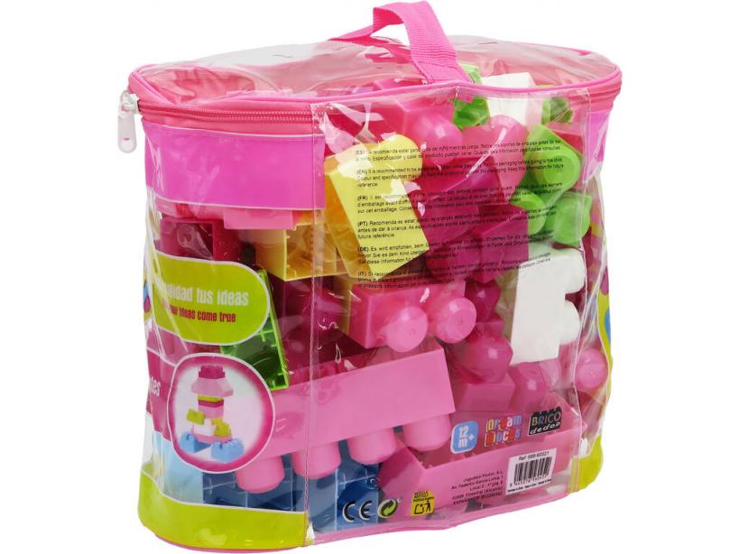 BRICODEDOS | JUEGOS DE CONSTRUCCIÓN Y BLOQUES Bolsa Rosa Set Bloques De Construcción Con 62 Piezas