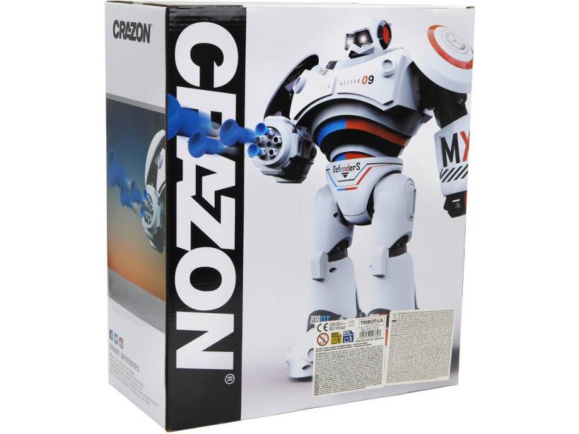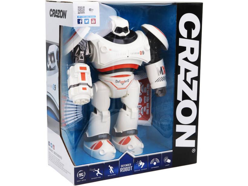 ¡Toma el control de un ser futurista lleno de sorpresas y funciones geniales! ¡Al llevarte a casa este divertido Robot Radio Control Defenders Naranja de Crazon!Disfruta de tu pasión por los robots y los juguetes con funciones por control remoto, al llevarte a casa este nuevo y sorprendente robot de batalla. El Defenders es un robot creado para la aventura, con lanza dardos, efectos especiales, luz y muchas más alucinantes funciones que controlar por control remoto gracias a los infrarrojos.Edad recomendada: 6 años o más.Colección: Crazon.Incluye: 1 robot Defenders de color blanco y naranja con función por control remoto, batería de 4,8V, lanzamiento de dardos proyectiles, efectos de sonido, luz, movimientos, diseño resistente y muchos más detalles geniales, 1 control remoto con función por infrarrojos, 8 dardos para el robot y 1 cable USB de carga para el robot.Medidas aproximadas del robot: 35 cm de alto, 28 cm de ancho y 9 cm de fondo.Medidas aproximadas del control remoto: 9 cm de alto, 14 cm de ancho y 2 cm de fondo.Cada control remoto funciona con 2 pilas «AA» (no incluidas)Puede encontrar las pilas y baterías