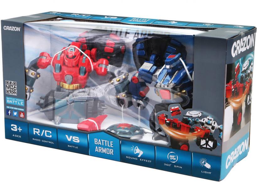 ¡Disfruta de la competición del futuro, hoy! ¡Gracias a este sorprendente Set 2 Robot de Batalla con Radio Control de Crazon!Hazte con este divertido que incluyen tres robots de batalla, que podrás ponerte a los mandos y luchar hasta hacerle volar la cabeza a tu robot rival. Utiliza una gran estrategia, mejora tu control del robot a los mandos y mucho más en la competición más impresionante que puedas imaginar.Edad recomendada: 3 años o más.Colección: Crazon.Incluye: 1 robot de batalla de color rojo y gris con función por radio control, efectos de sonido, luz, giros 360 grados, batería de 4,8V, arma y muchos más detalles geniales, 1 robot de batalla de color azul y gris con función por radio control, efectos de sonido, luz, giros 360 grados, batería de 4,8V, arma y muchos más detalles geniales, 2 controles remoto para los robots y 1 cable USB de carga.Medidas aproximadas de cada robot: 17 cm de alto, 24 cm de ancho y 8 cm de fondo.Medidas aproximadas de cada control remoto: 9 cm de alto, 12 cm de ancho y 3,5 cm de fondo.Cada control remoto funciona con 2 pilas «AA» (no incluidas)Puede encontrar las pilas y baterías