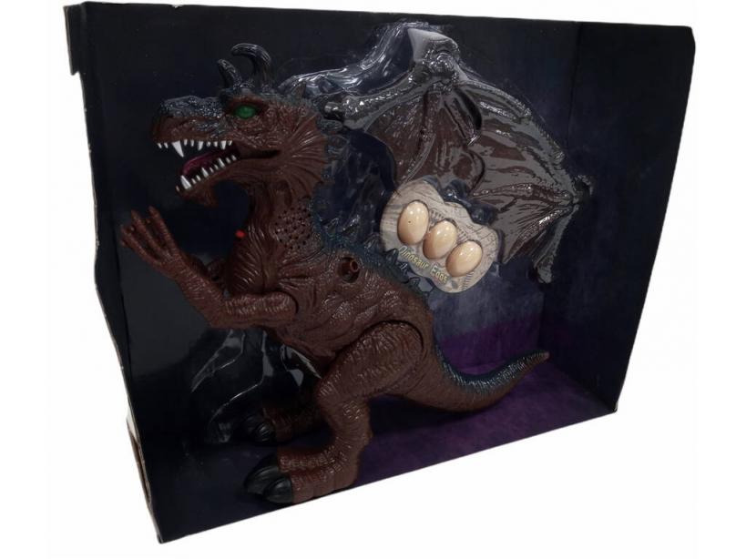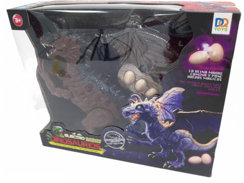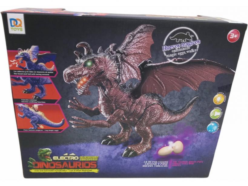 ¡Vuelven los seres más imponentes y divertidos del lugar! ¡No dejes escapar este fantástico Dinosaurio Marrón Andador de Electro Dinosaurios!Hazte con este nuevo e impresionante dinosaurio caminante, capaz de poner huevos mágicos a la vez que recorre toda la casa. Su cabeza y cola se mueven, dándole un toque realista e impresionante, además, emite sonidos y luces que le aportan una mayor emoción al momento de juego. ¡Deja sin aliento al resto de tus juguetes al ver a parecer a La Reina Madre de los dinosaurios!Edad recomendada: + 3 años.Incluye: 1 dinosaurio andador de color marrón con alas, luces y sonidos de acción y 3 huevos mágicos.Medidas aproximadas del juguete: 27 cm de alto, 10 cm de ancho y 28 cm de largo.Medidas aproximadas de cada huevo de dinosaurio: 3 cm de alto, 2 cm de ancho y 2 cm de fondo.Funciona con 3 pilas «AA» (no incluidas)Puede encontrar las pilas y baterías