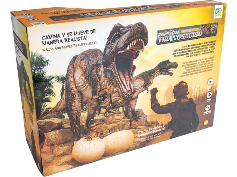 ¡Pon a prueba tu puntería frente a un ser aterrador! ¡Gracias al nuevo pack Misión Tiranosaurio Dinosaurio Andador Desmontable Marrón con Pistola!Un peligroso dinosaurio se ha escapado y has de proteger al resto de animales de la selva, coge tu pistola y apunta al dinosaurio. Tienes una misión muy especial, apunta al dinosaurio y trata de dar en el blanco hasta desmontar este genial dinosaurio de juguete.El dinosaurio se ha fabricado en plástico ligero y resistente, con luces y sonidos de acción, movimientos y piezas desmontables.Edad recomendada: + 3 años.Incluye: 1 dinosaurio andador desmontable de color marrón de la colección Misión Tiranosaurio con luces y sonidos, 1 pistola para jugar junto al dinosaurio y 1 bote de plástico para llenar con agua el dinosaurio.Medidas aproximadas del dinosaurio: 26 cm de alto, 12 cm de ancho y 40 cm de largo.Medidas aproximadas de la pistola: 13 cm de alto, 3 cm de ancho y 17 cm de largo.El dinosaurio funciona con 4 pilas «AA» (no incluidas)Puede encontrar las pilas y bateríasLa pistola funciona con 2 pilas «AAA» (no incluidas)Puede encontrar las pilas y baterías
