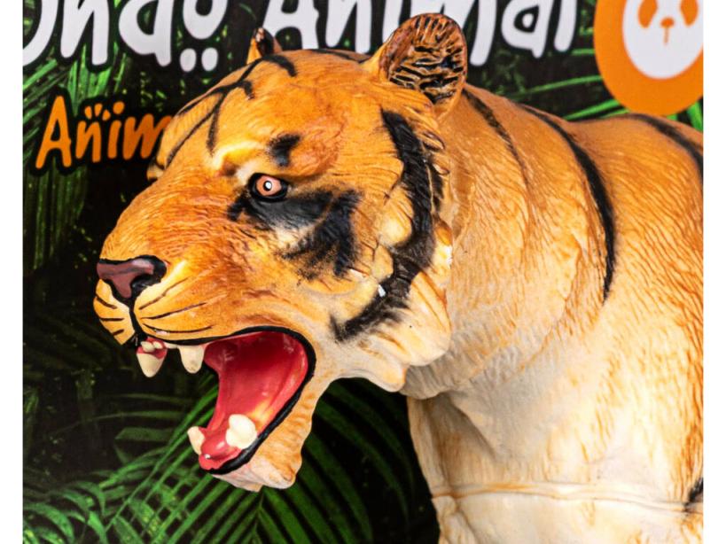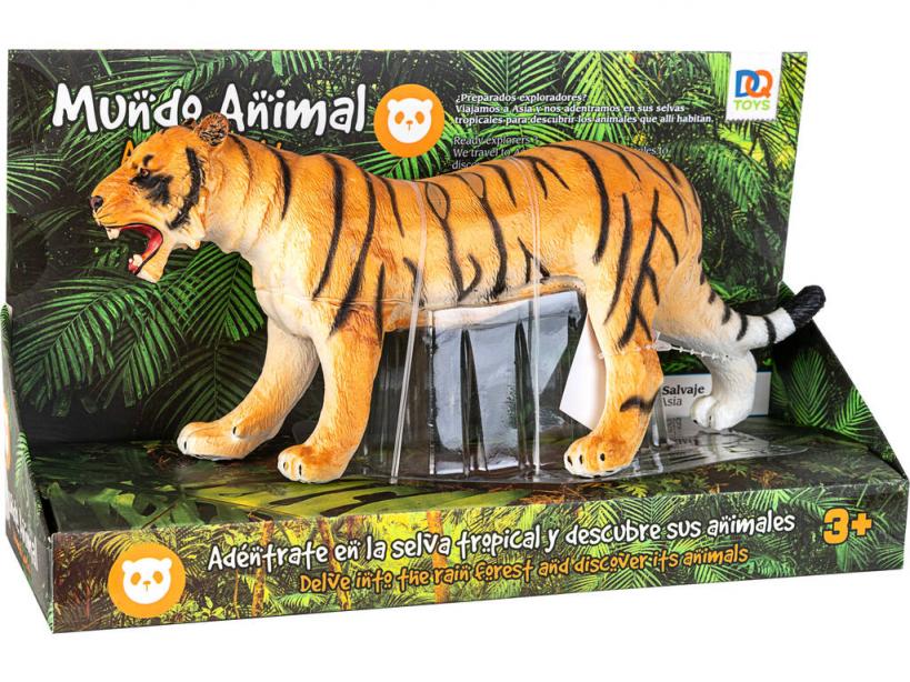 ¡Prepárate para tomar el control de un ser asombroso y brutal! ¡Disfruta de nuevas aventuras junto a la genial Figura Tigre de Mundo Animal!Consigue esta nueva figura de goma blandita, elástica y resistente, una figura pintada y llena de detalles, con la que recrear nuevas aventuras de lo más salvajes. Un tigre en posición amenazadora, mostrando sus colmillos y listo para comenzar a correr tras su objetivo. ¡Construye un hábitat especial para el tigre y disfruta de aventuras realistas en un tamaño muy especial!Encuentra más figuras de goma de la colección Mundo Animal, una colección que te trae animales salvajes de ahora y siempre, con diseños muy logrados y la comodidad de las figuras de goma blandita para los peques.Edad recomendada: + 3 años.Incluye: 1 figura Tigre rugiendo de la colección Mundo Animal.Medidas aproximadas del artículo: 11 cm de alto, 7 cm de ancho y 26 cm de fondo.