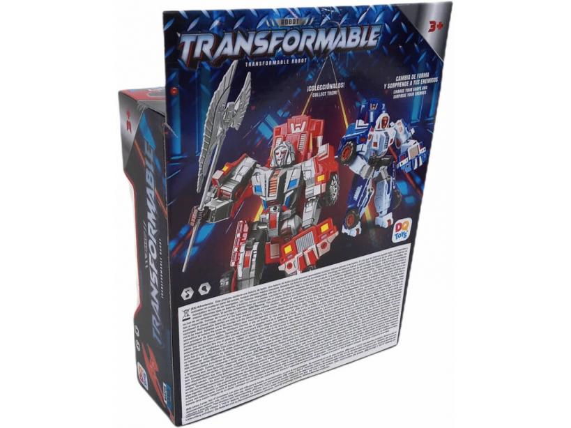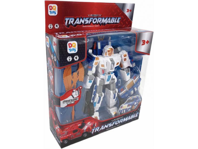 ¡Hora de pasar a la acción sobre las cuatro ruedas y sobre dos potentes piernas robóticas! ¡Con este Robot 22 cm. Transformable Azul!Consigue este impresionante robot con luces y sonidos, que se puede convertir con unos sencillos pasos en un vehículo azul y blanco. Recorre toda la ciudad en busca de acción y cambia su forma para derrotar a los enemigos.¡Multiplica las opciones de diversión gracias al resto de robots transformables que en nuestra web encontrarás! ¡Reúne a todo el ejercito de robots y disfruta de aventuras llenas de acción y diversión!Edad recomendada: + 3 años.Incluye: 1 robot transformable en coche de color azul y blanco con luces y sonidos de acción, 1 pistola láser para el robot y 1 lanza para el robot.Medidas aproximadas del robot: 22 cm de alto, 15 cm de ancho y 7 cm de fondo.Medidas aproximadas de la lanza: 19 cm de largo y 5 cm de ancho.Funciona con 3 pilas «AG13» (incluidas sólo para demostración)Puede encontrar las pilas y baterías