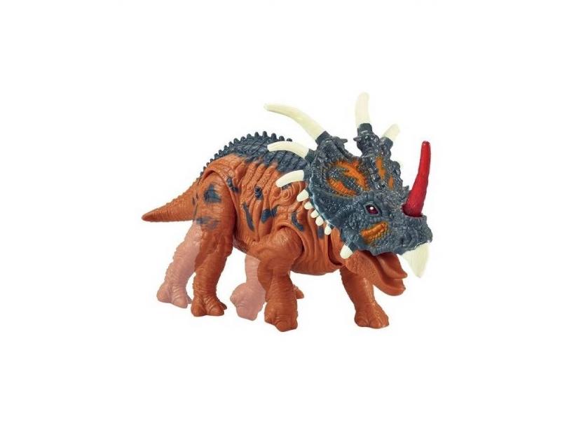 ¡Haz hueco en casa para un se de otra era! ¡Descubre el nuevo y genial Triceratops 24 cm. con Luces y Sonidos!Consigue este nuevo y genial dinosaurio electrónico, con cuerno que se ilumina, sonidos brutales de dinosaurio y función que le permite caminar por toda la casa. ¡Solo tienes que activarlo y comenzar a disfrutar de todas geniales funciones!¡Completa la aventura junto al resto de dinosaurios caminantes disponibles en nuestro amplio surtido web! ¡Mezcla seres del jurásico con tus juguetes preferidos y disfruta de horas de la diversión más brutal!Edad recomendada: 3 años o más.Colección: Electro Dinosaurios de DQ Toys.Incluye: 1 dinosaurio Triceratops de color marrón y gris con cuerno que se ilumina, sonidos de dinosaurio y función caminante.Medidas aproximadas del dinosaurio: 14 cm de alto, 9 cm de ancho y 24 cm de largo.Las luces y sonidos funcionan con 3 pilas «AG13» (incluidas sólo para demostración)Puede encontrar las pilas y baterías