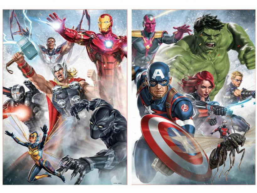 ¡Vengadores, tenemos una nueva misión! ¡Completar el nuevo Puzzle 2×500 Marvel Avengers de Educa!Consigue este fantástico puzzle doble, un divertido reto para los auténticos fans de los Vengadores y sus aventuras. En una de las imágenes podrás ver a Thor junto a Iron Man, Black Panther, The Wasp, War Machine y Falco; mientras que en la otra imagen se pude ver a Hulk junto a Visión, Capitán América, Viuda Negra, Ant-Man y Ojo de Halcón. ¡Todos en posición de ataque y con un diseño brutal! ¡Dos imágenes alucinantes para formar pieza a pieza y con las que decorar tu habitación! Descubre más puzzles de la mejor calidad y con imágenes de tus personajes de ficción favoritos en nuestra web, encuentra miles de retos con los que aprender y pasarlo en grande. Fabricado en España.Edad recomendada: + 11 años.Incluye 2 puzzles de 500 piezas de los Vengadores y cola FixPuzzle.Medidas aproximadas: 48 cm de alto y 34 cm de ancho.
