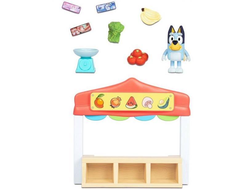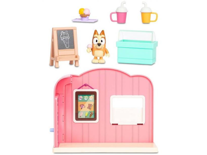 ¡Disfruta de la vida al aire libre en la ciudad de tu perrito animado favorito! ¡Gracias a este Bluey Mini Playset Aire Libre de Famosa!Consigue este nuevo escenario con personaje de la serie animada Bluey, una oportunidad de oro para recrear algunas de las aventuras más inolvidables de Bluey y sus amigos. Escoge entre los dos packs disponibles (se venden por separado) o hazte con ambos para multiplicar las opciones de diversión.¡Este y otros muchos packs llenos de personajes de la serie animada Bluey te esperan en nuestro gran surtido web! ¡Sorprende a los peques fans de la serie con los juguetes más logrados e inspiradores!Edad recomendada: 3 años o más.Colección: Bluey.Incluye: 1 figura personaje con partes articuladas, 1 playset especial y accesorios para jugar.Medidas aproximadas de la figura (varia en función del modelo): 6 cm de alto, 3,5 cm de ancho y 4 cm de fondo.Medidas aproximadas del playset (varía en función del modelo): 14 cm de alto, 16 cm de ancho y 6,5 cm de fondo.Disponible 2 modelos: (Frutería o Heladería).No olvides especificar el modelo deseado en nuestro apartado de comentarios. En caso de no concretar, enviaremos uno al azar.