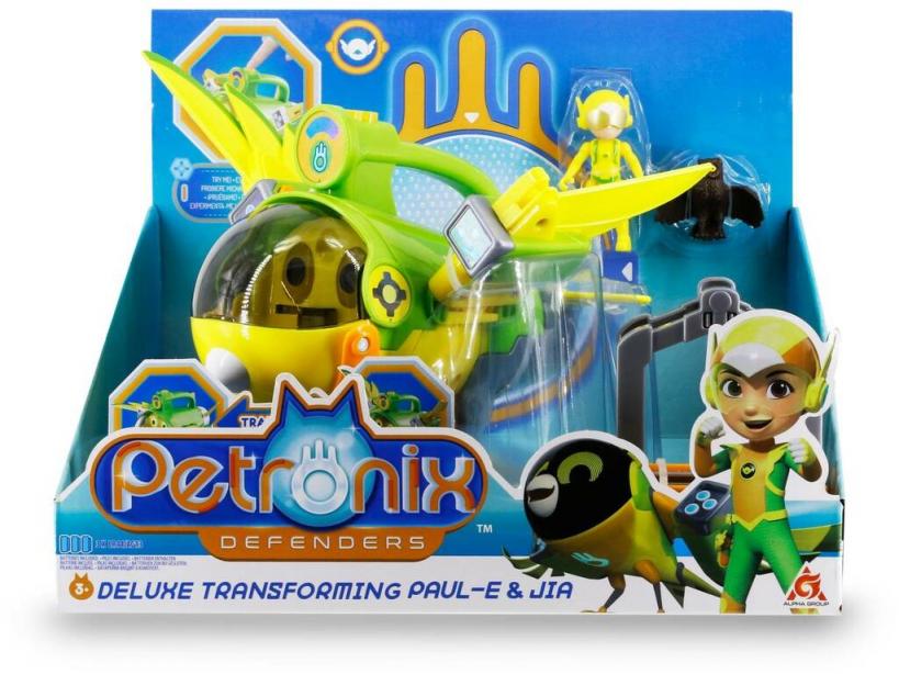 ¡Hora de pasar a la acción! ¡Hay que proteger a los animales en peligro junto a este pack Petronix Defenders Vehículo Transformable Deluxe y Figura de Famosa!Escoge tu modelo preferido y ayúdale a proteger a los animales salvajes que están en peligro, disfruta de las aventuras de los Petronix Defenders junto a las figuras de acción y sus vehículos transformables más alucinantes. Escoge tu modelo preferido o hazte con todos los disponibles, para poder así recrear los momentos más épicos de Jia, Matt y todos sus amigos.Edad recomendada: 3 años o más.Colección: Petronix Defenders.Incluye: 1 figura de acción articulada, 1 figura animal salvaje o 2 proyectiles (varia en función del modelo, 1 vehículo transformable deluxe con cabina para la figura de acción y ojos que se iluminan.Medidas aproximadas del vehículo (varia en función del modelo): 15 cm de alto, 21 cm de ancho y 18 cm de largo.Medidas aproximadas de la figura: 7 cm de alto, 2,5 cm de ancho y 2 cm de fondo.Disponible 2 modelos: (Matt o Jia) .No olvides especificar el modelo deseado en nuestro apartado de comentarios. En caso de no concretar, enviaremos uno al azar. Funciona con 3 pilas «AAA» (incluidas sólo para demostración)Puede encontrar las pilas y baterías