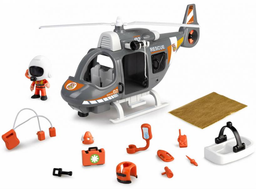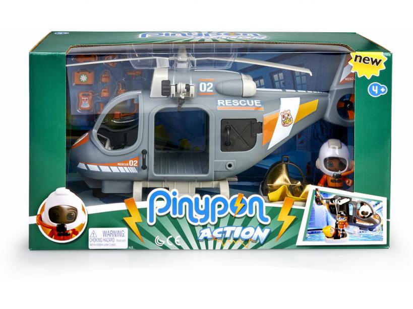 Si necesitas rescatar y ayudar a socorrer, con este Helicóptero de rescate será más fácil y divertido.Fabricado con material de alta calidad este helicóptero de color gris y blanco es perfecto para que tengas tu ciudad PinyPon protegida desde el aire. Un helicóptero con hélices giratorias, espacio en la cabina para sentar a la figura y que pilote, y espacio en la parte trasera para la camilla de los heridos.Un helicóptero que te ayudará a rescatar a los heridos y subirlos al aparato gracias a la polea que tiene en el lateral. El rescate será mucho más fácil y podrás sobrevolar la zona para comprobar que todo está controlado. Consigue este fabuloso juguete y juega con tus amigos y amigas a divertirte cuidando y velando por la seguridad de los ciudadanos de tu ciudad. ¡Lo pasarás genial! ¡Que no te lo cuenten!Medidas aproximadas: 18 cm de alto, por 38 cm de ancho y 12 de fondo.Edad recomendada: +4 años.Incluye: 1 Helicóptero, 1 figura, accesorios.