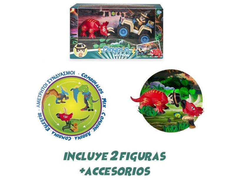 ¡Prepárate para una aventura de otra era! ¡Gracias al nuevo pack Pinypon Action Wild Quad con Dinosaurio de Famosa!Hazte con este completo set que incluye a un valiente explorador, que junto a su quad y los accesorios imprescindibles, estará listo para cualquier situación. Explora la isla y encuentra al dinosaurio perdido, una figura articulada que se mueve por toda la isla en busca del resto de sus compañeros.Edad recomendada: + 4 años.Incluye: 1 figura explorador con sombrero, 1 figura dinosaurio de color rojo, 1 quad de exploración para la figura, 1 linterna, 1 walkie, 1 pistola de vengalas, 1 cámara de fotos y muchos más accesorios.Colección: Pinypon Action.Medidas aproximadas de la figura: 7 cm de alto, 4 cm de ancho y 3,5 cm de fondo.Medidas aproximadas del dinosaurio: 8 cm de alto, 7 cm de ancho y 15 cm de largo.Medidas aproximadas del vehículo: 10 cm de alto, 8 cm de ancho y 14 cm de largo.
