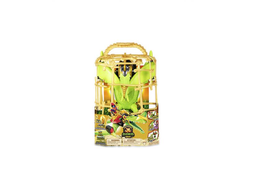 Disfruta y disecciona este Pterodactyl y crea miles de aventuras hasta encontrar el tesoro bañado en oro de verdad.Fabricado con material de alta calidad y muy resistente, este set de juego de Treasure X, tiene 16 niveles de aventura. Comienza sacando de la jaula dorada de plástico el ave que desplegará sus alas. Una vez esté libre el Pterodactyl, tendrás que diseccionar su estómago para extraer de su interior un cazador capturado. Solo tienes que abrir el saco para sacar del slime que hay interior al guerrero que será el complemento de juego perfecto. Además encontrarás otros accesorios necesarios para poder abrir el tesoro donde encontrarás la gran sorpresa.Podrás crear miles de aventuras y luchar contra los enemigos lanzando las lanzas desde las alas del Pterodacty. Un entretenimiento ideal para poder jugar sin parar y crear aventuras sin fin.Edad recomendada: +5 años.Incluye: 1 Pterodactyl, 1 cazador, accesorios.Medidas aproximadas Jaula: 28 cm de alto, 19 cm de ancho y 11 cm de fondo.
