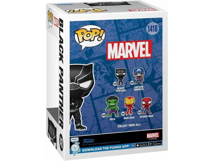 ¡Wakanda por siempre! ¡Aquí tienes un nuevo y esperado Funko Pop Marvel Figura Black Panther con Cabeza Oscilante!Consigue este sensacional Funko de Black Panther, una figura de vinilo llena de detalles, con cabeza oscilante para un movimiento divertido y colores muy logrados para darle un toque especial a tu colección.¡Este y otros de tus Vengadores preferidos te esperan en nuestro amplio surtido de Funkos de Marvel al mejor precio! ¡Spiderman, Iron Man, Hulk y muchos de tus personajes favoritos esperan estar en tus estanterías más especiales!Edad recomendada: 3 años o más.Edición: Funko Pop!Colección: Marvel.Número: 1418.Incluye: 1 figura de colección Black Panther con cabeza oscilante, traje negro con detalles plateados, ojos blancos, pose de acción y muchos más detalles de lujo y 1 caja de almacenaje y exposición con diseño especial.Medidas aproximadas de la figura: 10 cm de alto, 6 cm de ancho y 5,5 cm de fondo.Medidas aproximadas de la caja de almacenaje y exposición: 16 cm de alto, 11,5 cm de ancho y 9 cm de fondo.