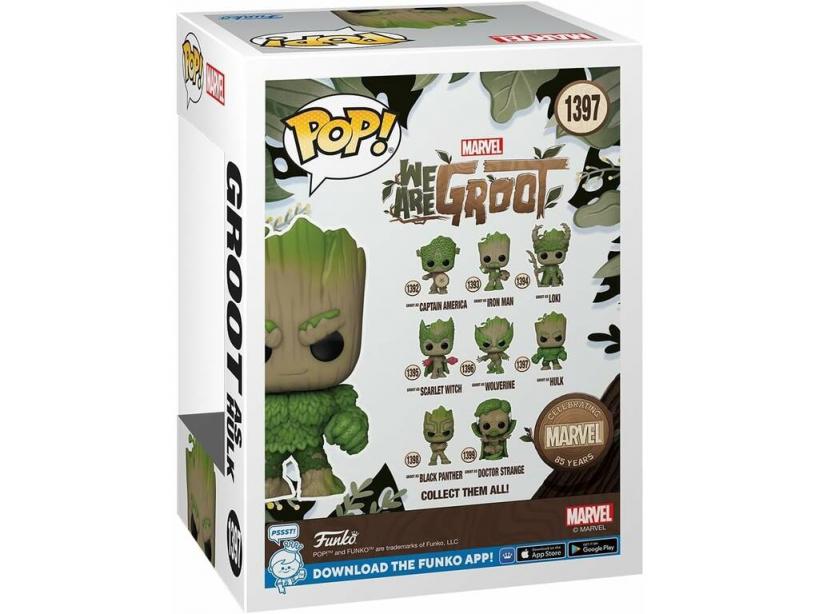 ¡Ahora Groot aplasta! ¡Gracias al nuevo Funko Pop Marvel We Are Groot Figura Groot como Hulk con Cabeza Oscilante!Hazte con este genial Funko de Groot con su aspecto más burtla hasta la fecha, imitando el aspecto del poderoso Hulk, con detalles tan geniales como gesto enfadado, cuerpo lleno de hojas verdes y muchos más detalles.¡Descubre la colección de Groots más divertida en nuestro gran surtido web! ¡Tu héroe favorito como otros héroes Marvel de lo más populares en la nueva linea We Are Groot de Marvel!Edad recomendada: 3 años o más.Edición: Pop!Colección: Marvel We Are Groot.Número: 1397.Incluye: 1 figura coleccionable de vinilo de Groot como Hulk con cabeza oscilante y pose de acción y 1 caja de almacenaje y exposición con diseño especial de la figura.Medidas aproximadas de la figura Groot como Hulk: 8,5 cm de alto, 5 cm de ancho y 4 cm de fondo.Medidas aproximadas de la caja de almacenaje y exposición: 16 cm de alto, 11 cm de ancho y 9 cm de fondo.