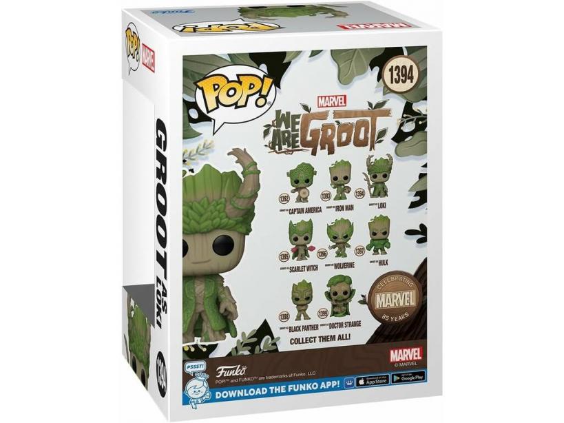 ¡Descubre la versión más engañosa de tu héroe preferido! ¡Al llevarte a casa este genial Funko Pop Marvel We Are Groot Figura Groot como Loki con Cabeza Oscilante!Consigue este nuevo Funko de Groot con un look inspirado en el del Dios del Engaño, una figura con cabeza oscilante y detalles muy especiales que recuerdan al poderoso Loki.¡Vuelve el pequeño Groot y lo hace con los looks más reconocibles del Universo Marvel! ¡Celebra los 85 años de Marvel junto a Groot y sus figuras coleccionables más geniales!Edad recomendada: 3 años o más.Edición: Pop!Colección: Marvel We Are Groot.Número: 1394.Incluye: 1 figura coleccionable de vinilo de Groot como Loki con cabeza oscilante y pose relajada y 1 caja de almacenaje y exposición con diseño especial de la figura.Medidas aproximadas de la figura Groot como Loki: 9 cm de alto, 6 cm de ancho y 5 cm de fondo.Medidas aproximadas de la caja de almacenaje y exposición: 16 cm de alto, 11 cm de ancho y 9 cm de fondo.
