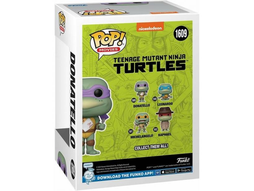 ¡Vuelve Donnie y lo hace con un look muy especial! ¡Disfruta del nuevo y esperado Funko Pop Movies Teenage Mutant Ninja Turtles Figura Donatello con Pizza!Hazte con esta divertida figura coleccionable de Donatello, una de tus Tortugas Ninja preferidas, en esta ocasión la tienes comiendo pizza y con una pintura muy especial qu le da un toque retro animado.¡Encuentra muchos más Funkos de las tortugas Ninja en nuestro amplio surtido de figuras Funko y otras marcas! ¡Llena tu carrito de artículos colecciones llenos de detalles, recuerdos y acción!Edad recomendada: 3 años o más.Edición: Funko Pop! Movies.Colección: Teenage Mutant Ninja Turtles.Número: 1609.Incluye: 1 figura de colección de Donatello una porción de pizza en una mano, un tenedor en otra mano, servilleta en el cuello y muchos más detalles geniales y 1 caja de almacenaje y exposición con diseño especial.Medidas aproximadas de la figura: 10 cm de alto, 6 cm de ancho y 5,5 cm de fondo.Medidas aproximadas de la caja de almacenaje y exposición: 16 cm de alto, 11,5 cm de ancho y 9 cm de fondo.