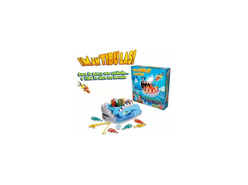 ¡Prepara tu caña! ¡Nos vemos de pesca! Preparate par aun gran día de pesca, pero no vamos a pescar a un lugar normal y tranquilo, iremos a pescar a la boca del remido Mantibulas. Mantubulas es un despistado tiburón que duerme con la boca abierta y desde el exterior se pueden pescar deliciosos pescaditos. Lanza el dado y tendrás que sacar el pescado que aparezca en la cara, ten cuidado, porque si Tibu salta y te muerde, habrás perdido la partida. ¡Consigue el mayor número de peces sin que Tibu te alcance para ganar!Disfruta de este divertidísimo juego de mesa con el que los peques lo pasarán en grande, perfecto para jugar con amigos y en familia.Edad recomendada: + 4 años.De 2 a 4 jugadores.Incluye: 1 tibu, 12 pescados de colores, 1 caña de pescar, 1 dado, 1 hoja de adhesivos y manual de instrucciones.