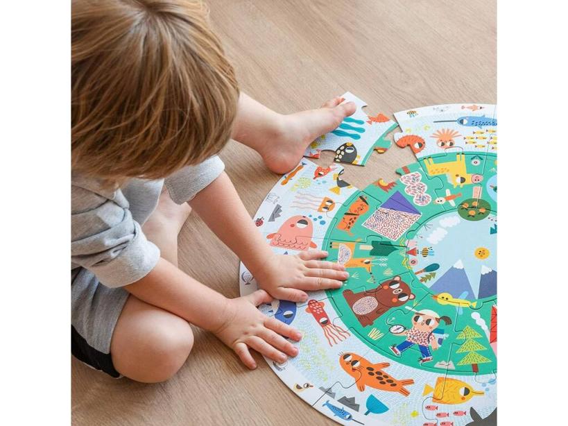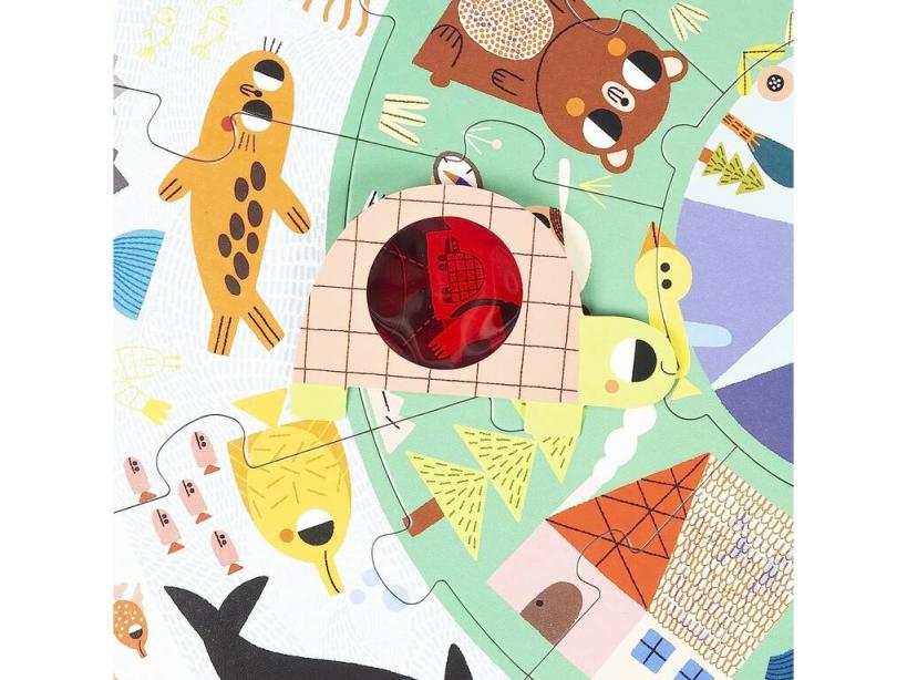 ¡Disfruta de este alucinante rompecabezas! De la mano de Puzzle XXL Descubre Animales de Goula Construye pieza a pieza este mundo ideal e increíble puzzle de animales y descubre diferentes criaturas terrestres y acuáticasEn el puzzle se enconden más dibujos increíbles que se podrán ver a través de un visor especial que incluye el set. De manera que una vez montas el puzzle, podrás mirar y descubrir animales ocultos.El visor rojo te ayudará a descubrir los animales terrestres y el azul los marinos. Las piezas son tamaño XXL perfectas para unas manos pequeñas como la de los peques¡Atrévete a jugar y descubre tu creatividad e ingenio!Edad recomendada: 3 años o másIncluye: 1 caja de almacenaje ilustrada ,1 puzzle ilustrado Descubre Animales, 2 visores especiales para descubrir animales ocultosNúmero total de piezas: 25 piezasMedidas aproximadas del puzzle: 58 cmMedidas aproximadas de la lupa: 7 cm de alto x 9 cm de anchoIlustraciones hechas por: Teresa Bellón