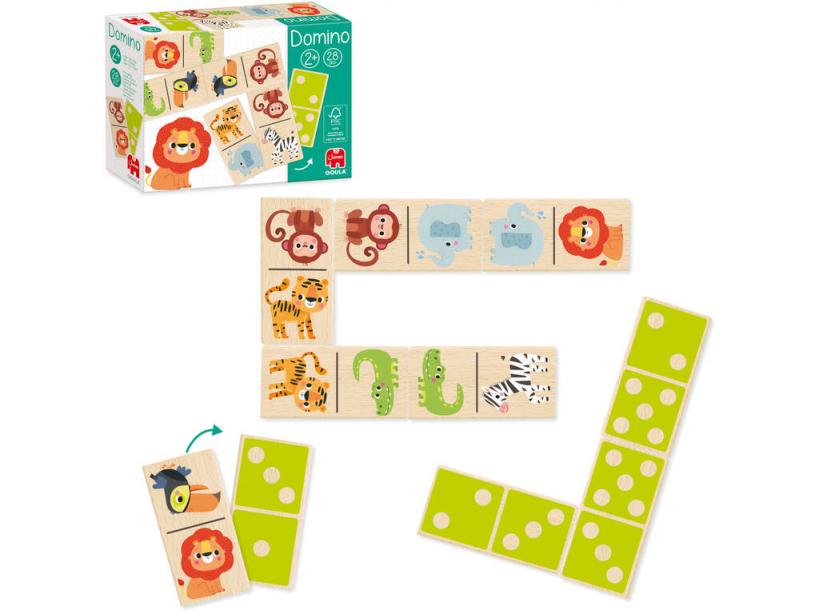 ¡Diviértete jugando mientras descubres más de los animales! Con el Dominó Selva de Diset 1110700204!Hazte con este increíble juego de dominó donde los más pequeños podrán jugar al famoso juego del dominó y aprender a identificar los diferentes animales de la selva. ¡El león, la cebra, el cocodrilo y mucho más!Un artículo con piezas de madera de gran calidad y con dibujitos divertidos. El juego perfecto para estimular las habilidades de los más pequeños que mejorarán la memoria y la agudeza visual.Este y muchos más artículos de Goula con diferentes temáticas, los podrás encontrar en nuestra web. Edad recomendada: 2 años o más.Incluye: una caja de almacenaje, un juego dominó con piezas reversibles con ilustraciones de animales de la selva y números.Número total de piezas: 28 piezas.