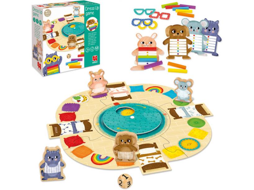 ¡El juego cooperativo siempre es un acierto en el entretenimiento de los más peques! ¡Consigue el genial Juego Dress Up de Goula y descubre todas sus ventajas!Descubre un nuevo juego infantil en el que hay que recorrer el tablero y tratar de vestir de colores a tu personaje. Lanza el dado, recorre el tablero y consigue prendas de colores hasta completar el look. ¡Divertido, educativo y para los más peques!Artículo fabricado en Europa.Edad recomendada: + 3 años.Número de jugadores: De 2 a 4 jugadores.Duración aproximada de cada partida: 10 minutos.Incluye: 1 caja de almacenaje ilustrada, 1 tablero de juego, 4 peones de juego, 1 dado, 4 personajes para vestir, 24 barritas y 4 gafas.Medidas aproximadas de cada peón: 6 cm de alto y 5 cm de ancho.Medidas aproximadas de la caja de almacenaje: 23 cm de alto, 23 cm de ancho y 7 cm de fondo.
