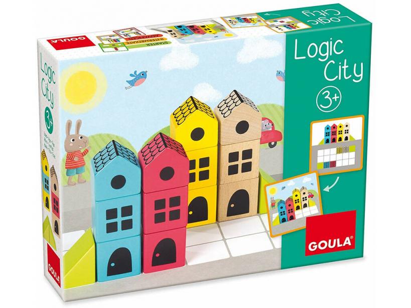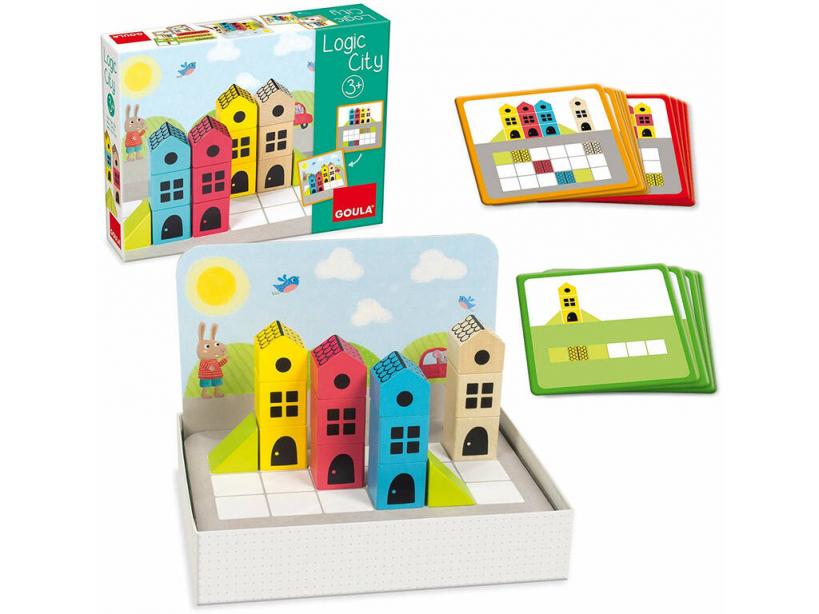 ¡Hora de construir, aprender y disfrutar! ¡Con el genial Logic City de madera de Goula! ¡Aprende construyendo y aumenta la dificultad de juego! Consigue este divertidísimo juguete de madera, con el que los peques podrán desarrollar la orientación espacial y la lógica a la vez que lo pasan en grande. El juguete incluye 3 niveles de dificultad y en todos ellos podrán comprobar el resultado. ¡Juega y aprende en 3 pasos! ¡Observa, Construye y comprueba la solución! Disfruta con este y otros geniales artículos de juego y desarrollo para los más peques de la casa, echa un vistazo a nuestra web y encuentra una gran cantidad de juguetes de madera con los que desarrollar la orientación espacial, la imaginación, y un sin fin de habilidades en desarrollo a edades tempranas. Edad recomendada: + 3 años.Incluye: 14 piezas de madera, 1 base reversible, fondo decorado y 45 cartas de desafío progresivas.