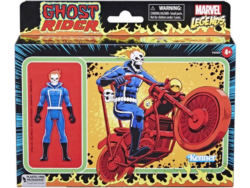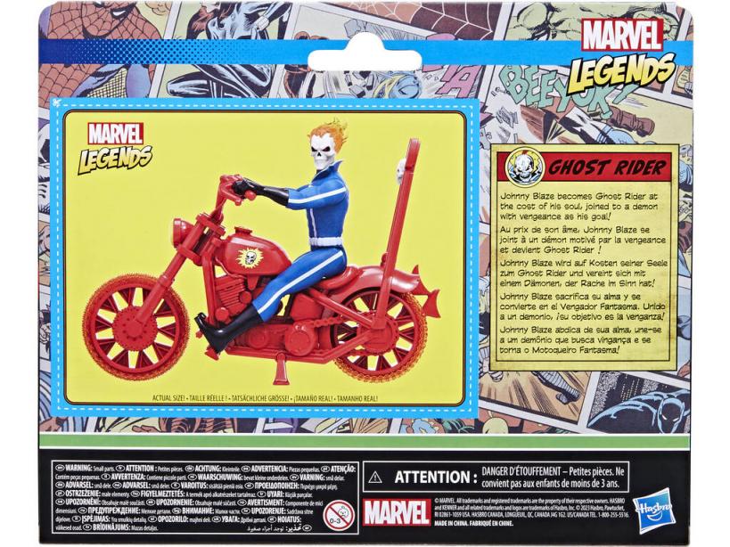 ¡Vuelve el Vengador Fantasma y lo hace con uno de sus looks más icónicos! ¡Haz hueco en tu colección para esta Marvel Legends Ghost Rider de Hasbro!No dejes escapar esta alucinante figura de estilo vintage, inspirada en los cómics de Gosth Rider y lista para recrear tus momentos preferidos, así como para decorar un espacio muy especial de tu casa.¡Descubre muchas más figuras de acción de la linea Marvel Legeds y disfruta del poder de la nostalgia y la magia de Marvel!Edad recomendada: 4 años o más.Colección: Marvel Legends.Incluye: 1 figura de acción articulada Ghost Rider con traje azul y blanco y 1 moto de color roja con espacio para la figura de acción.Medidas aproximadas de la figura Ghost Rider: 9,5 cm de alto, 4,4 cm de ancho y 1,5 cm de fondo.Medidas aproximadas de la moto: 8,5 cm de alto y 12,5 cm de largo.