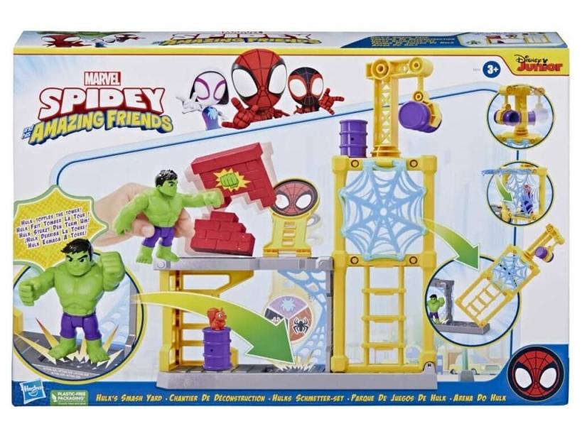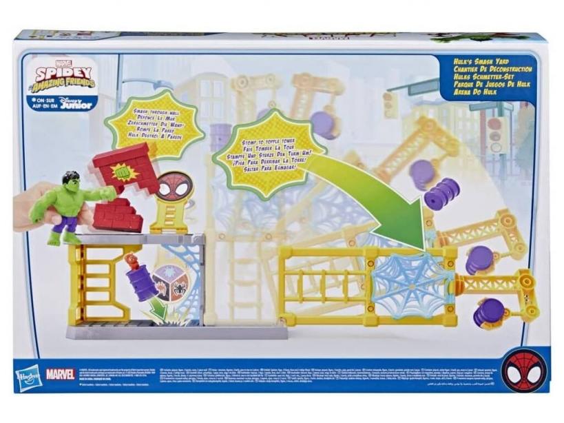 ¡Vuelve tu superhéroe preferido y lo hace con retos alucinantes! ¡Hazte con el pack Marvel Spidey And His Friends Parque de Juegos de Hulk de Hasbro!Ayuda al bueno de Hulk a controlar sus poderes en un espacio especialmente creado por Spiderman para él. Recorre el parque de juegos en busca de nuevos retos, aplasta todo lo que veas y disfruta de una nueva aventura cada día.Edad recomendada: 3 años o más.Colección: Marvel Spidey And His Amazing Friends.Incluye: 1 figura Hulk articulada, 1 playset con diferentes zonas de juego, 1 muro de dos piezas, 1 grúa, 3 barriles y más accesorios.Medidas aproximadas de la figura: 11,5 cm de alto, 8 cm de ancho y 2 cm de fondo.Medidas aproximadas del playset: 42 cm de alto, 35 cm de ancho y 7 cm de fondo.Medidas aproximadas del muro: 10,5 cm de alto, 8,2 cm de ancho y 2,5 cm de fondo.