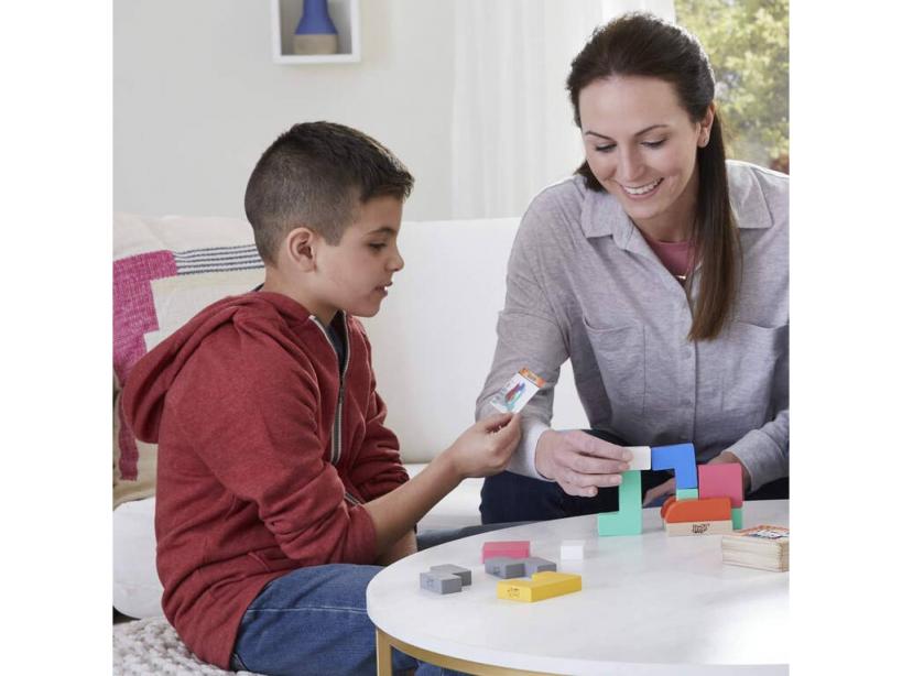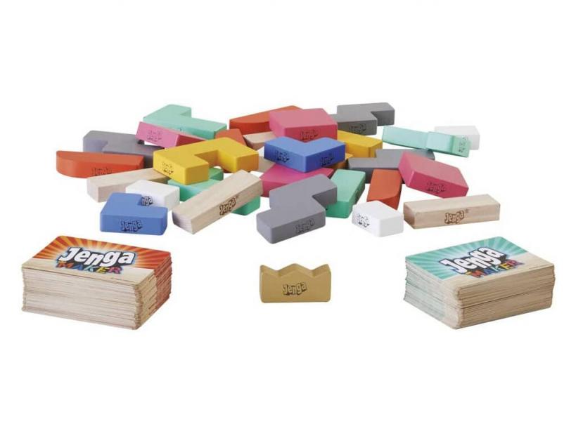 ¡Construye en pareja creaciones únicas! ¡Con un clásico evolucionado como lo es el Jenga Maker de Hasbro!Hazte con esta divertida versión del Jenga, que incluye una forma de juego por parejas, en la que una parte de la pareja ha de dar ordenes, para que la otra logre crear el dibujo de la tarjeta de juego. Las tarjetas tienen formas reconocibles e indican el número y forma de las fichas necesarias para la creación, da buenas ordenes para una creación firme y ganadora.Disfruta de hasta 200 construcciones diferentes gracias a las tarjetas y las piezas incluidas, trabaja en equipo y evita que la construcción se caiga para ganar!.Número de jugadores: De 2 a 6 jugadores.Edad recomendada: + 8 años.Incluye: Caja de almacenaje, 28 bloques de madera, corona de madera, 200 cartas Jenga Maker e instrucciones de juego en castellano y portugués.Medidas aproximadas de la caja: 27 cm de alto, 23 cm de ancho y 4,5 cm de fondo.