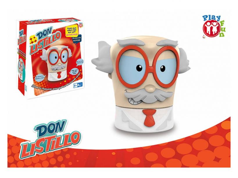 Juego en castellano ¡Don listillo tiene claro que lo sabe todo! Serás capaz de saber tanto como él Disfruta de este divertidísimo juego preguntas y respuestas junto a tus amigos y familiares.Don Listillo dirige el juego, deberéis hacer todo lo que el diga y estar muy atentos para responder a tiempo. Para jugar solo tienes que estar atento al tema que ha escogido Don Listillo, pensar en una palabra relacionada con el tema y cuando llegue tu turno dí rápidamente esa palabra que has pensado a la vez que presionas la cabeza de nuestro nuevo amigo sabiendo. Si la respuesta es correcta, el turno pasará al siguiente, pero si la respuesta no es correcta, puedes llevarte varios «O» de colores. Al final de cada partida, aquel que tenga menos «O» será el ganador de la partida, y será tan listillo como nuestro Don Listillo. Edad recomendada: + 8 añosMedidas aproximadas de Don Listillo: 13 cm de alto, 10 cm de ancho y 10 cm de fondo.