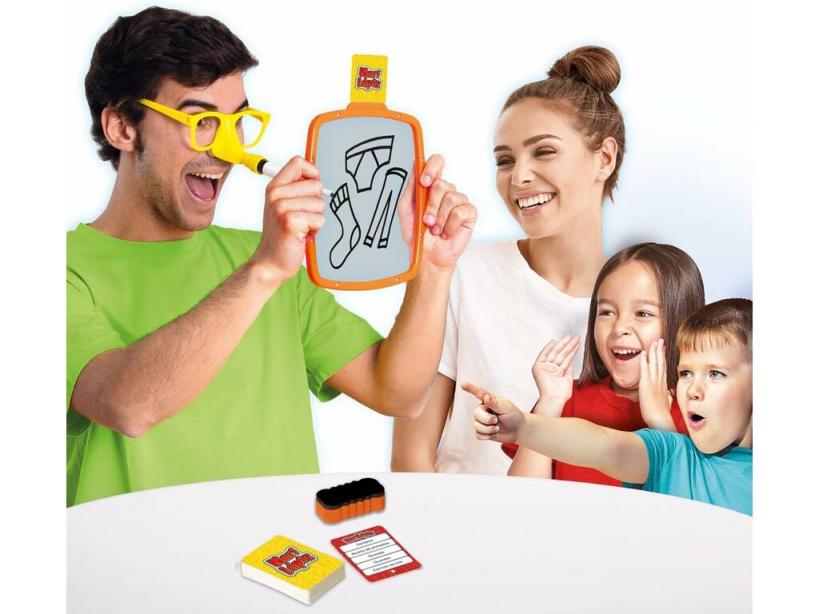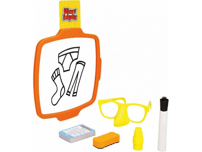 ! Pon a prueba tus habilidades pintando con la nariz! ¡Cómo oyes, con este divertido juego Narilápiz Imc. Toys te lo pasaras en grande!Juega con tus amigos y familia a este juego, demuestra quien tiene la nariz con más arte. El juego consiste en que un jugador tiene que coger una tarjeta con varias opciones, deberás escoger una de ellas y ponerte manos a la obra. Dibuja lo que te haya tocado y trata de hacerlo lo mejor posible, ganaras si consigues que el resto de jugadores adivinan lo que estás dibujando.Edad recomendada: 6 años o más.Colección: PlayFun.Incluye: 1 gafas con nariz postiza, 1 rotulador, 1 borrador, 1 pizarra transparente, 1 mazo con las pruebas, 1 molde para anclar el rotulador a las gafas.Medidas aproximadas de la caja de almacenaje: 26,5 cm de alto, 26,5 cm de largo y 6 cm de fondo. Peso aproximado de la caja con todos los artículos: 0,40 Kg.