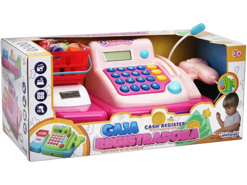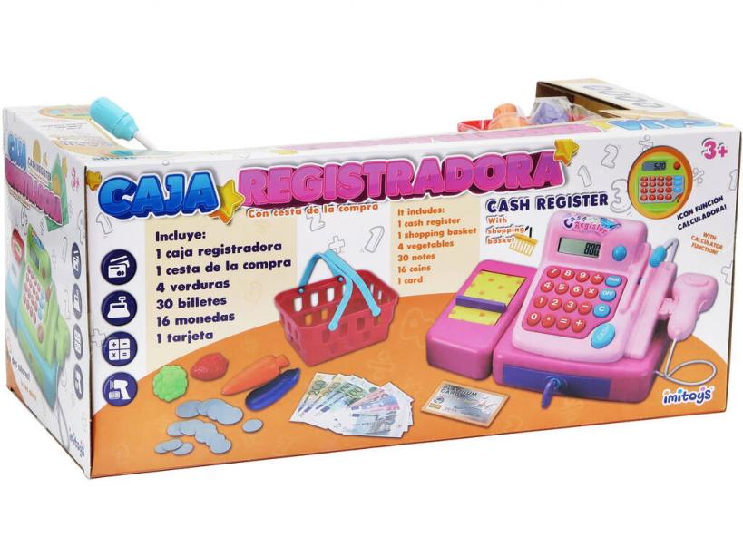 ¡Disfruta de tu propio supermercado en casa con esta genial pieza y los accesorios incluidos! ¡Consigue la Caja Registradora Rosa 34 cm. con Cesta de la Compra!Disfruta junto a los peques y esta genial caja registradora con calculadora, ideal para calcular los precios y darle un mayor realismo a las horas de juego e imitación. La caja se ha fabricado en plástico ligero y resistente, con accesorios para jugar a hacer la compra y mucho más.Edad recomendada: + 3 años.Incluye: 1 caja registradora de juguete con calculadora, 1 cesta de la compra, monedas, billetes, tarjeta de crédito, llave para la caja registradora y más accesorios de juego.Medidas aproximadas de la caja registradora: 14 cm de alto, 34 cm de ancho y 18 cm de fondo.Medidas aproximadas de la cesta: 4,5 cm de alto, 10,5 cm de ancho y 9 cm d ancho.Medidas aproximadas de la moneda de menor tamaño: 1,5 cm de largo, 1,5 cm de ancho y 0,1 cm de fondo.La caja registradora funciona con 2 pilas «AA» (no incluidas)Puede encontrar las pilas y baterías