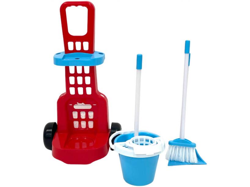 ¡El juego de imitación tiene beneficios múltiples para los peques de la casa! ¡Para ello tienes ideas tan geniales y completas como este Carrito Limpiza de 5 Piezas!Consigue este genial carro de plástico, con el que transportar todo lo que los peques necesitan para imitar a los adultos en casa. Podrán fregar el sueño, barrer las migas de la merienda y todo ello hacerlo de forma ordenada gracias al práctico carrito con ruedas.Edad recomendada: 3 años o más.Colección: Imitoys.Incluye: 1 carrito de la limpieza de color rojo con ruedas negras y huecos para accesorios, 1 cubo de fregar de color azul con asa y escurridor blanco, 1 fregona con el palo blanco, 1 cepillo con el palo blanco y 1 recogedor con el palo blanco.Medidas aproximadas del carro de la limpieza: 60 cm de alto, 31 cm de ancho y 20 cm de fondo.Medidas aproximadas del cepillo: 40 cm de alto, 11 cm de ancho y 12 cm de fondo.Medidas aproximadas del cubo de fregar: 16 cm de alto, 19 cm de ancho y 19 cm de fondo.
