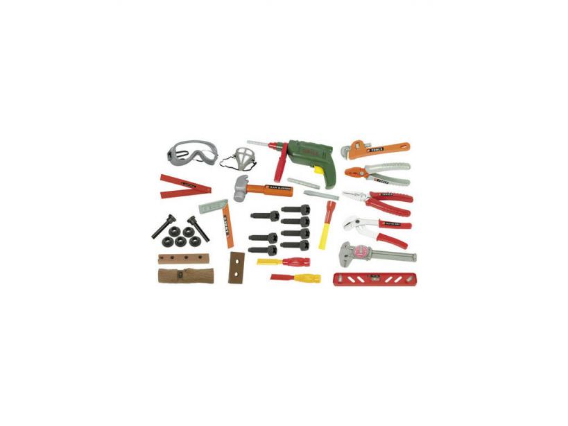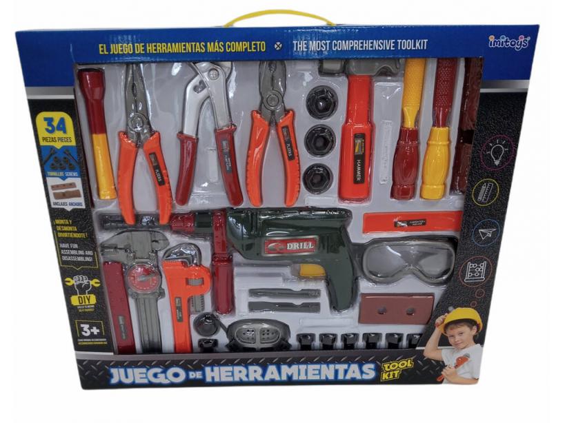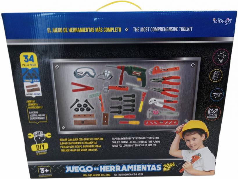 Un completo set de herramientas con 34 piezas como las de los profesionales de verdad. Aprende a usarlas para ayudar en las reparaciones domésticas y convertirte en el manitas de la casa.Arregla cosas o realiza muebles propios para tu casa con este fantástico set en el que encontrarás todas las herramientas necesarias para jugar a ser el manitas más divertido. Recuerda ponerte las gáfas y la máscara ¡Es por tu seguridad!