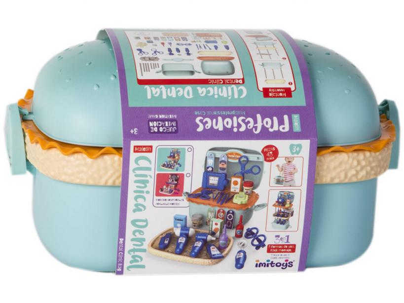 ¡Prepárate para disfrutar de una profesión de lo más peculiar y divertida! ¡Gracias a este nuevo Maletín Clínica Dental con 43 Piezas!Consigue este fantástico maletín lleno de piezas y accesorios con los que los más peques de la casa podrán jugar a ser dentistas. Un maletín muy especial por su tamaño y opciones de juego, ideal para motivar al juego de imitación en casa y cualquier otro lugar.¡Completa las aventuras junto al resto de maletines y accesorios de lo más variados disponibles en nuestro amplio surtido web! ¡El regalo ideal para los peques de la casa!Edad recomendada: 3 años o más.Colección: Maletín Profesiones de Imitoys.Incluye: 1 maletín de color azul con cierres de seguridad, herramientas de dentista, gafas, botes y muchos más accesorios de juego.Número total de piezas: 43 piezas.Medidas aproximadas del maletín cerrado: 13 cm de alto, 25 cm de ancho y 17 cm de fondo.