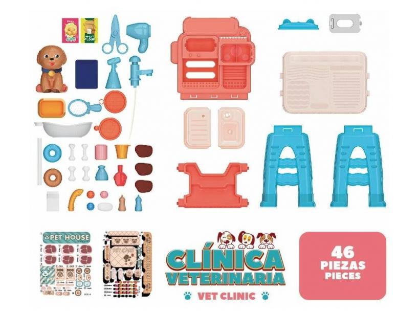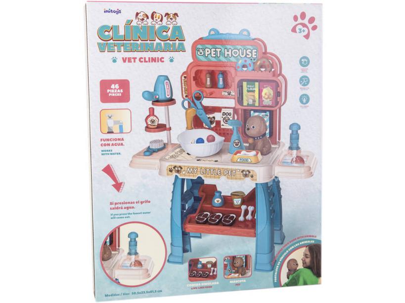 ¡Descubre un nuevo espacio donde los peques pueden jugar, crecer y desarrollar habilidades a través del juego de imitación! ¡Gracias a esta Mesa Clínica Veterinaria 46 Piezas!Hazte con este nuevo pack que incluye una genial mesa que los peques podrán disfrutar, imaginando que es su propia clínica veterinaria, donde curar a todos los animalitos de la ciudad. Un pack lleno de accesorios de juego, ideal para simular cuidados de lo más variados junto a tus animalitos de juguete.Edad recomendada: 3 años o más.Colección: Imitoys.Incluye: 1 mesa clínica veterinaria de color roja, azul y beige con grifo que suelta agua a presión, bandeja inferior, estanterías y muchos espacios de juego, 1 perrito marrón, 1 secador, 1 tijeras, pegatinas para decorar la mesa, huesos de juguete, 1 cepillo, carne y muchos más accesorios de juego.Medidas aproximadas del la mesa clínica: 60 cm de alto, 30 cm de ancho y 20 cm de fondo.Medidas aproximadas del perrito: 9,5 cm de alto, 6 cm de ancho y 7 cm de fondo.Medidas aproximadas del secador: 8 cm de alto, 4,5 cm de ancho y 6,5 cm de largo.