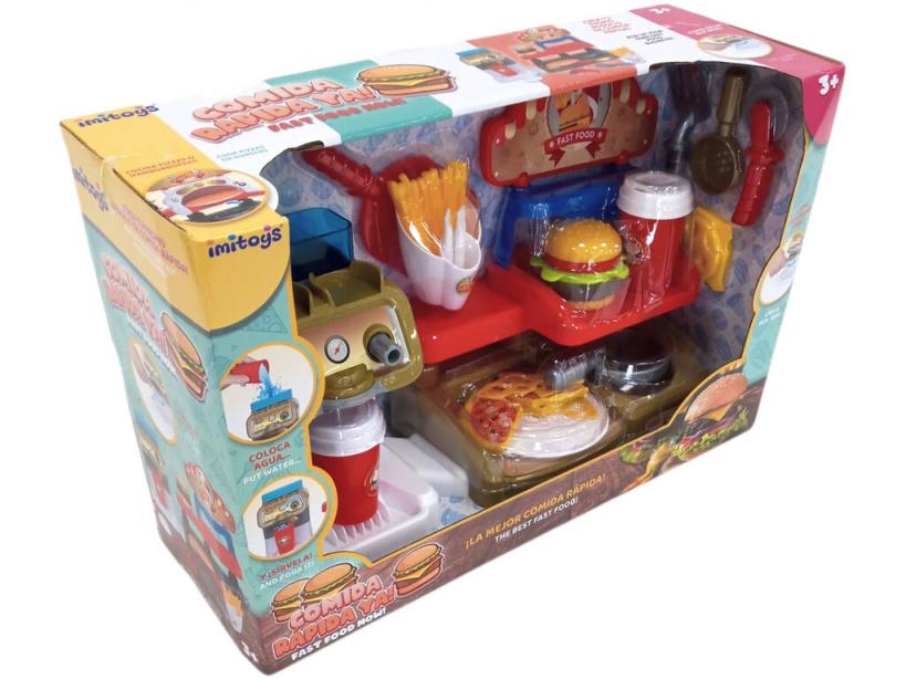 ¡Cocina tus platos preferidos en un mismo lugar! ¡Gracias al nuevo Set Comida Rápida 17 Piezas!Consigue este impresionante set de juegos de imitación, que incluye una gran variedad de alimentos y zonas de juego, donde simular que cocinas desde una sabrosa pizza, a una apetitosa hamburguesa o un fantástico café de máquina. El regalo ideal para disfrutar junto a los más peques del tiempo libre en casa, completa cualquier rincón de la habitación con este divertido set.Para un mayor realismo y diversión, puedes colocar agua en la cafetera y servir cafés a tus clientes más especiales. ¡Fríe, corta, crea, cocina y mucho más en tu nuevo e ingenioso set!Edad recomendada: + 3 años.Incluye: 1 set comida rápida con cafetera, freidora, plato para pizza, 1 hamburguesa, 1 cortador de pizzas, patatas fritas, 1 recipiente para las patatas fritas, 1 espátula, 1 baso de café con tapa y más accesorios de juego.