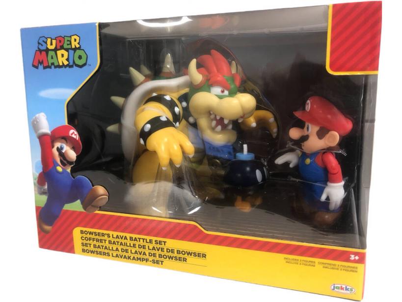 En una batalla entre Super Mario Set de Juego Mario vs. Bowser Jakks 64512-4L, que personaje te gustaría desempeñar. ¡Se trata de una lucha de muchos años!.Las figuras está fabricadas a través de buenos materiales por lo que les hacen ser resistentes a sus ataques y ligeras a la hora de moverse en la batalla. Todas ellas están caracterizadas como si hubieran salido directamente del juego a tus manos directamente, Bowser tiene el tamaño y la fuerza pero Mario tiene la inteligencia y la astucia. Quien crees que será el vencedor.Edad recomendada: + 3 años. Incluye: Una caja de almacenaje ilustrada, una figura de Bowser, una figura de Mario y una figura bomba.Medidas aproximadas de la caja de almacenaje: 18 cm de alto x 25 cm de ancho x 17 cm de fondo.Medidas aproximadas de Bowser: 16 cm de alto x 16 cm de ancho x 20 cm de fondo.Medidas aproximadas de Mario: 10 cm de alto x 4 cm de ancho x 3 cm de fondo.Medidas aproximadas de la bomba: 5 cm de alto x 3 cm de ancho x 4 cm de fondo.¡La gran batalla de todos los tiempos!.