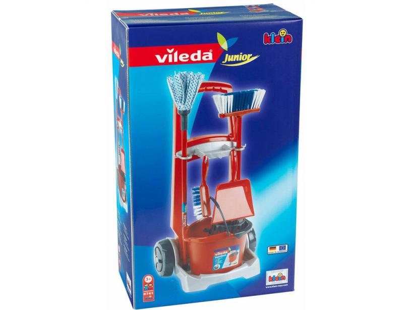 ¡Hora de jugar a limpiar! ¡Con el nuevo y divertido Vileda Carro de Limpieza de Klein! Hazte con este completo y práctico carrito de la limpieza, con todo lo necesario para jugar a limpiar toda la habitación como los mayores. Un juguete de imitación muy realista, fabricado en materiales de gran calidad y resistencia. ¡El regalo ideal para que los peques aprendan jugando! Juguete fabricado en Alemania. Edad recomendada para su uso: + 3 años.Incluye: 1 carro de la limpieza Vileda, 1 cubo Vileda con escurridor y base para la fregona, 1 cepillo Vileda, 1 recogedor Vileda, 1 cepillo de mano Vileda y 1 fregona Vileda. Altura aproximada del carro de la limpieza: 59 cm de alto.Medidas aproximadas del cubo: 16 cm de alto, 17,5 cm de ancho y 21 cm de largo.Medidas aproximadas de la fregona: 63 cm de largo, 4 cm de ancho y 4 cm de fondo.