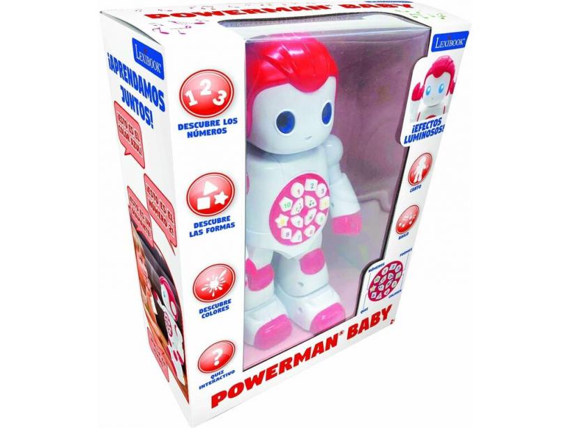 ¡Sorprende a los más peques con su primer juguete interactivo! ¡Hazte con el nuevo Powerman Baby Primer Robot Parlante de Lexibook!Disfruta de horas de aprendizaje y diversión junto a los más peques de la casa, descubre los números, las formas, los colores y mucho más junto a este pequeño robot. Utiliza sus botones para verle cantar, bailar e incluso disfrutar de sus preguntas especiales. ¡El primer robot de aprendizaje para los peques! ¡Muy fácil de utilizar y con diseño especial para captar el interés de los más peques!Edad recomendada: 2 años o más.Colección: Powerman de Lexibook.Incluye: 1 robot infantil Powerman Baby de color blanco y rojo con efectos luminosos, movimientos y botones especiales (números, formas, colores y preguntas).Medidas aproximadas del robot: 23 cm de alto, 13 cm de ancho y 7,5 cm de fondo.Funciona con 3 pilas «AA» (no incluidas)Puede encontrar las pilas y baterías
