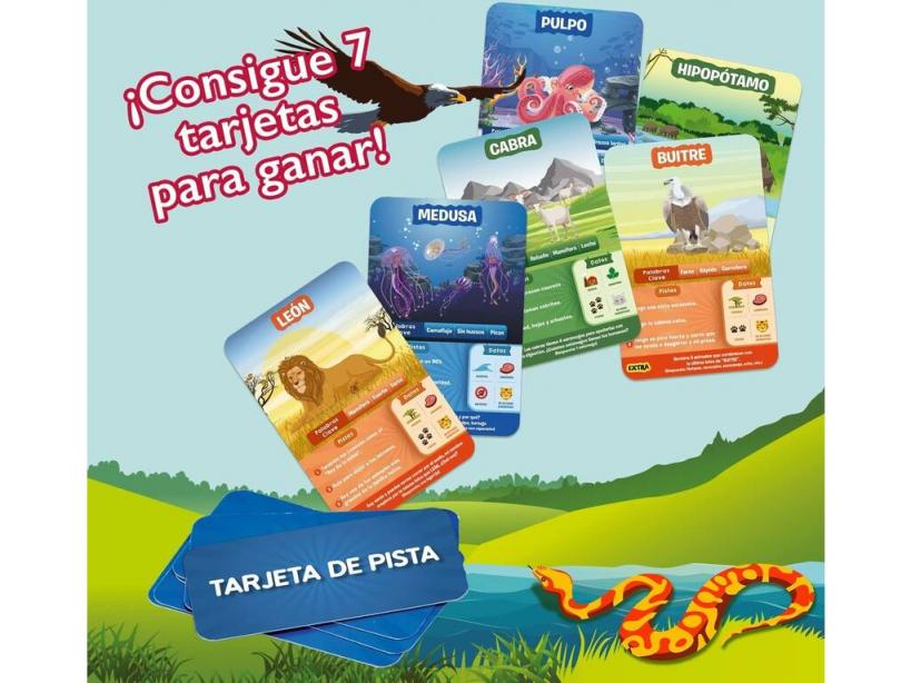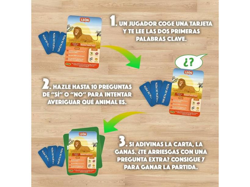 ¡Disfruta de un juego rápido e inteligente junto a amigos y familiares! ¡Gracias al nuevo Adivina En 10 Países del Mundo de Lúdilo!Consigue este fascinante juego de preguntas y respuestas con temática de animales del mundo, un juego rápido de preguntas inteligentes, en el que tienes 10 preguntas para descubrir el animal de la tarjeta. Muy fácil de jugar y divertido, para que toda la familia pueda pasarlo en grande, así como aprender una infinidad de datos curiosos sobre los animales. Tiene alas Es un animal salvaje ¡Descubre aquello que esconde la tarjeta y hazte con 7 de ellas para ganar la partida!Importante: Juego en castellano.Edad recomendada: 6 años o más.Número de jugadores: De 2 a 6 jugadores.Duración aproximada de cada partida: 30 minutos aproximadamente.Colección: Adivina en 10.Incluye: 1 caja de almacenaje ilustrada, 6 tarjetas de pista, 52 tarjetas de juego e instrucciones.Medidas aproximadas de la caja de almacenaje: 19 cm de alto, 14,5 cm de ancho y 4 cm de fondo.
