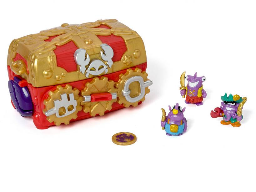 ¡Comienza tu aventura junto a tres personajes sin igual! ¡Prepárate para jugar y reír con el nuevo Piratix Monster Treasure de Magic Box!Hazte con este sorprendente cofre del tesoro que guarda muchas sorpresas, entre ellas un peligroso monstruo que te ataque si no tienes el código. Intenta abrir el cofre con el código secreto y libera a tres nuevas figuras Piratix con las que jugar y ampliar tu colección.¡Amplia las opciones de diversión y aventura junto al resto de los Piratix y sus accesorios más alucinantes! ¡Encuentra en nuestra web sobres con figuras sorpresa, barcos piratas y mucho más!Edad recomendada: 3 años o más.Colección: Piratix Adventure World.Incluye: 1 cofre Monster Treasure con diseño a todo color, código secreto y ataque del monstruo si fallas, 1 figura Pete Hammerhead, 1 figura Captain Charles Claw, 1 figura Rick Shine y 1 moneda exclusiva del tesoro.Medidas aproximadas del cofre Monster Treasure abierto: 12 cm de alto, 15 cm de ancho y 11 cm de fondo.Medidas aproximadas de cada figura (varia en función del modelo): 3 cm de alto, 3 cm de ancho y 3 cm de fondo.Medidas aproximadas de la moneda: 2,6 cm de diámetro y 0,2 cm de fondo.