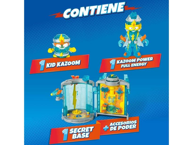 ¡Pulsa, transforma, dispara y mucho más! ¡Junto al nuevo y completo Superthings Secret Base Kazoom Power de Magic Box!Hazte con este increíble pack que incluye la genial base de los Kazoom, convertible en sala de poder y llena de accesorios para tus nuevas figuras. Acompaña a estos nuevos héroes en sus aventuras más impredecibles, y descubre un si fin de formas de juego y diversión en la ciudad de Kaboom.Edad recomendada: 3 años o más.Colección: Superthings Rivals Of Kaboom.Incluye: 1 playset Secret Base de color azul y gris con parte giratoria que muestra la Kazoom Room o la Power Room, 1 figura Kazoom Power Full Energy, 1 figura Kid Kazoom, 1 armadura para la figura, 1 slider para la figura, y 3 accesorios para la figura.Medidas aproximadas de la base cerrada 15 cm de alto, 11 cm de ancho y 11 cm de fondo.Medidas aproximadas de la figura Kazoom Power Full Energy: 7,5 cm de alto, 5 cm de ancho y 3 cm de fondo.