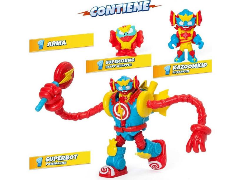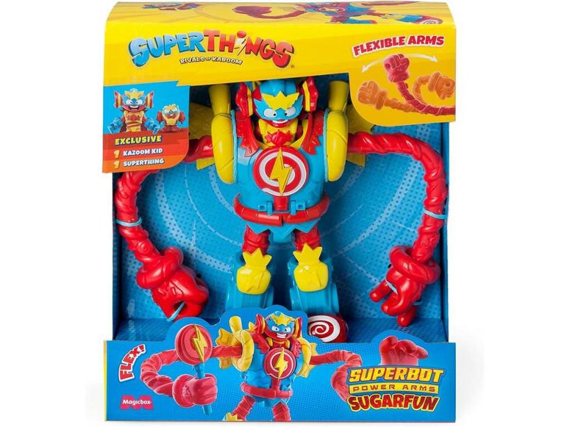 ¡Nuevos robots súper poderosos! ¡Descubre el nuevo Superthings Superbot Power Arms Sugarfun de Magic Box!Consigue este nuevo y completo Superbot con poderosos brazos flexibles, hueco para la figura y un diseño lleno de detalles y color. Junto al Superbot se incluyen dos figuras exclusivas para completar el juguete, y recorrer la ciudad en busca de nuevas misiones.¡Nuevos héroes han llegado a la ciudad de Kaboom y son más grandes, más fuertes y más flexibles! ¡Descubre lo último de los Superthings en nuestro gran surtido web!Edad recomendada: 3 años o más.Colección: Superthings Rivals Of Kaboom.Incluye: 1 Superbot Power Arms Sugarfun con brazos flexibles y hueco para las figuras, 1 figura exclusiva Kazoom Kid y 1 figura exclusiva Supething.Medidas aproximadas del Superbot: 16 cm de alto, 18 cm de ancho y 6 cm de fondo.