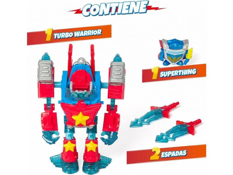 ¡Máxima acción, emoción y las transformaciones más geniales! ¡Junto al nuevo SuperThings Turbo Warior Power de Magic Box!Consigue este genial set que incluye una figura exclusiva lista para la acción junto a su robot de combate más genial. Transforma al robot en un vehículo con un sencillo gesto y acude al lugar de la acción en pocos instantes. ¡Disfruta del ataque de espada doble y mcuho más junto al nuevo Power de los Turbo Warrior! ¡Velocidad sobre rudas y la acción de las batallas más apasionantes con los nuevos SuperThings Turbo Warrior! ¡Encuentra a muchos más personajes en nuestro gran surtido web!Edad recomendada: 3 años o más.Colección: SuperThings Rivals Of Kaboom.Linea: Turbo Warrior.Incluye: 1 Turbo Warrior Power transformable 2 en 1 (robot o vehículo) con partes articuladas, 1 figura exclusiva SuperThings Lacelord y 1 espada de dos piezas para el robot.Medidas aproximadas del Power en modo robot: 20 cm de alto, 12 cm de ancho y 9 cm de fondo.Medidas aproximadas de la figura figura SuperThings Lancelord: 2,5 cm de alto, 3 cm de ancho y 1,5 cm de fondo.Medidas aproximadas de la espada unida: 18 cm de largo, 4 cm de ancho y 0,5 cm de fondo.
