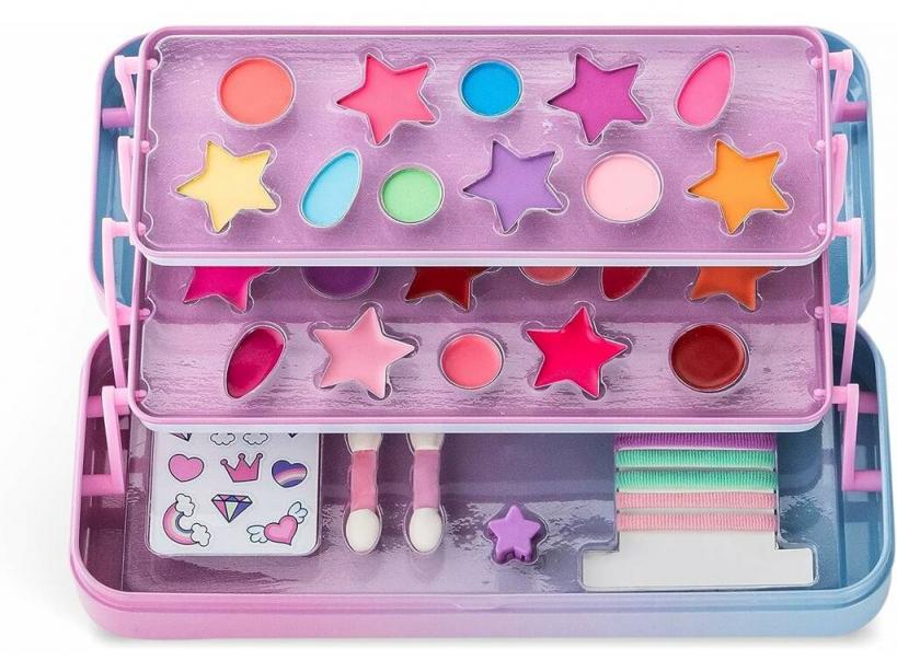 ¡Adéntrate en el mundo del maquillaje! De la mano de Martinelia Lata Maquillaje 3 Pisos Pequeño Unicornio de Martinelia 26103.Llena de ilusión y magia a los más peques regalando esta lata de maquillaje. Cuenta con todo lo imprescindible para que inicien sus primeros pasos en este mundo de glamour. Un artículo ligero que podrás llevarlo a cualquier para ponerte guapa.Al abrirlo podrás observar tres pisos diferentes con sombras de ojos, pintalabios y accesorios para darle un toque más gracioso a tus creaciones y decorar todos tus looks.Disfruta de un amplio y variado surtido de artículos perfectos para que los niños saquen su lado más creativo.Edad recomendada: 3 años o más.Incluye: una lata de maquillaje con estampado de unicornio, sombras de ojos, gloses de labios,tres gomas del pelo, dos aplicadores, pegatinas para decorar.Medidas aproximadas de la lata de maquillaje: 4 cm de alto x 22 cm de ancho x 4 cm de fondo.