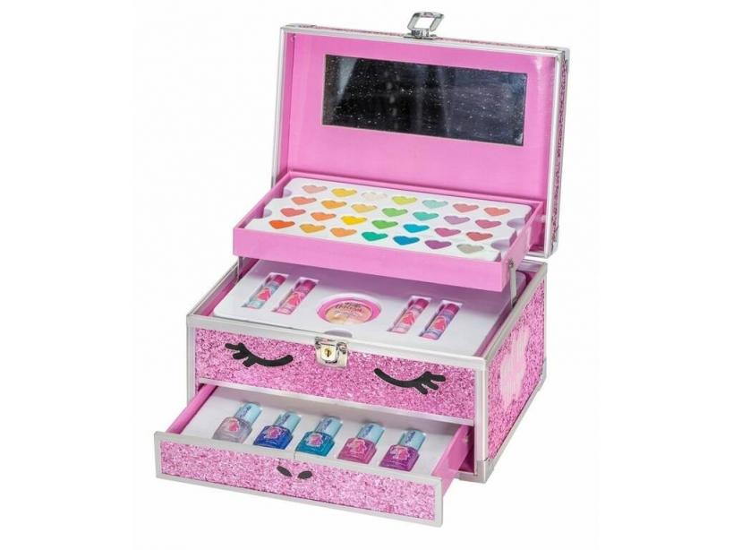 ¡Antes muerta que sencilla con Martinelia Maletin Accesorios Maquillaje 3 Pisos Pequeño Unicornio de Martinelia 30592!Hazte con este maletín perfecto para que los más pequeños puedan presumir recreando alucinantes maquillajes. ¡Aplícate sombras de ojos, échate rubor y presume de nueva manicura!¡Todo lo que necesitas saber para una entretenida sesión de bellaza a tu alcance! Cuenta con asa para llevarlo a cualquier parte y un cierre plateado que abre los tres pisos de maquillaje. Descubre un artículo genial con estampado divertido de purpurina con el que podrás ponerte coqueto y sorprender a todos tus amigos.Edad recomendada: 3 años o más.Incluye: un maletín con estampado de unicornio con purpurina rosa y un cuerno plateado, cierre, asa y tres pisos con espejo, sombras de ojos, cinco pintauñas, un colorete y balsamos labiales.Medidas aproximadas del maletín: 14 cm de alto x 25 cm de ancho x 18 cm de fondo.