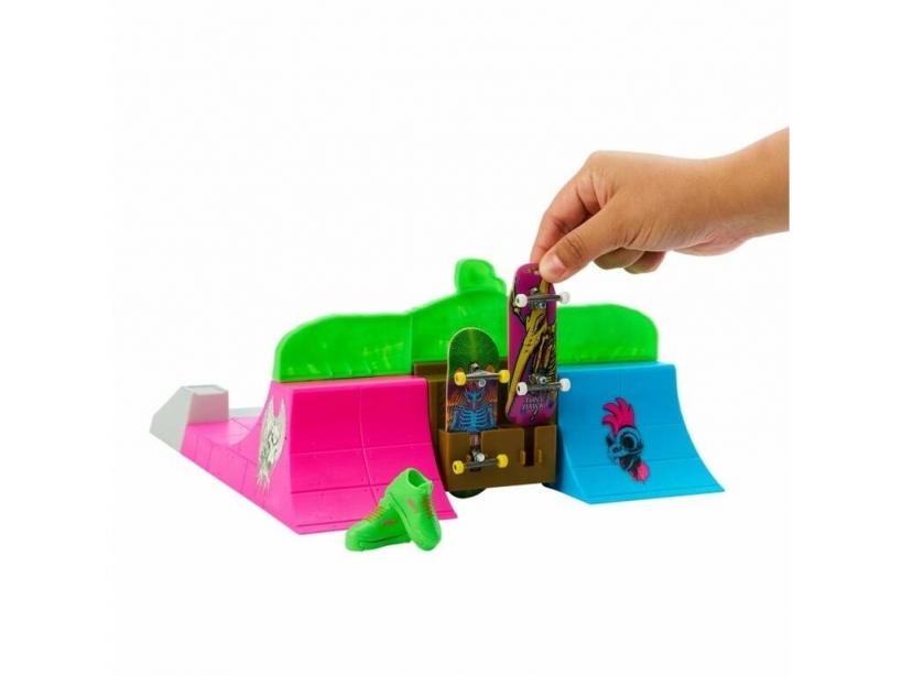 ¡Prepárate pata aceptar el reto del halcón! ¡Hazte con el nuevo Hot Wheels Skate Skatepark de Halcón de Mattel!Pon a prueba tu habilidad con el skate y hazlo en un espacio único y lleno de color. Colócate las deportivas especiales en los dedos y disfruta con los trucos más geniales en la rampa, la barandilla y muchos más espacios llenos de color. ¡Imita al genial Tony Hawk y hazlo en un formato mucho más divertido y seguro!Edad recomendada. 5 años o más.Colección: Hot Wheels.Linea: Hot Wheels Skate Tony Hawk.Incluye: 1 playset Skatepark de Halcón con rampas de colores neón, barandilla, escalones y muchos más espacios de juego, 1 skate Tony Hawk de color violeta, 1 skate Tony Hawk de color verde, 1 par de zapatillas para los dedos de color amarillas y 1 par de zapatillas para los dedos de color verde.Medidas aproximadas de cada skate: 2 cm de alto, 3,2 cm de ancho y 10 cm de largo.Medidas aproximadas de cada zapatilla: 2 cm de alto, 1,2 cm de ancho y 4 cm de largo.