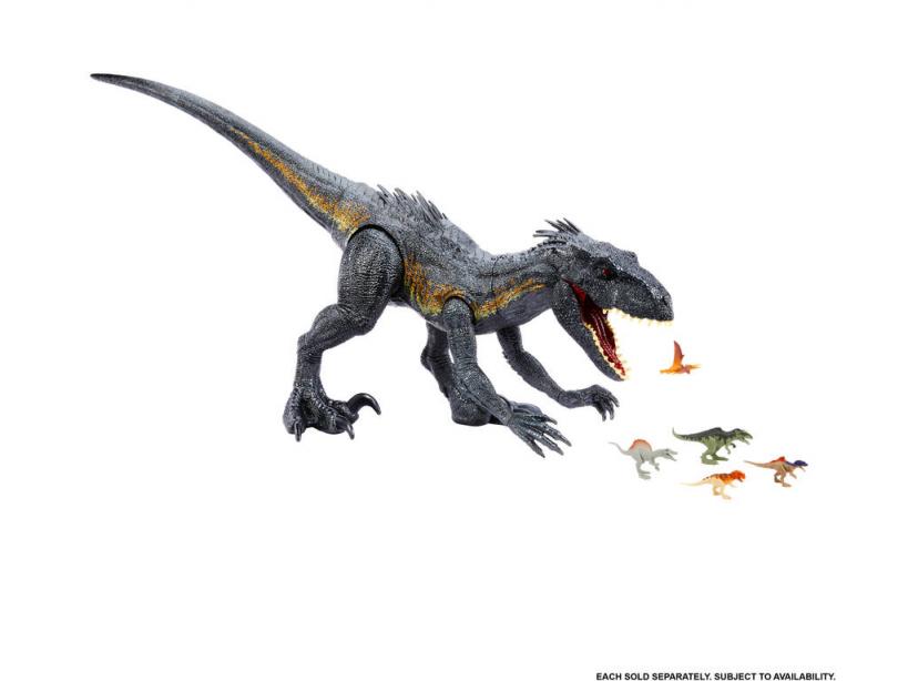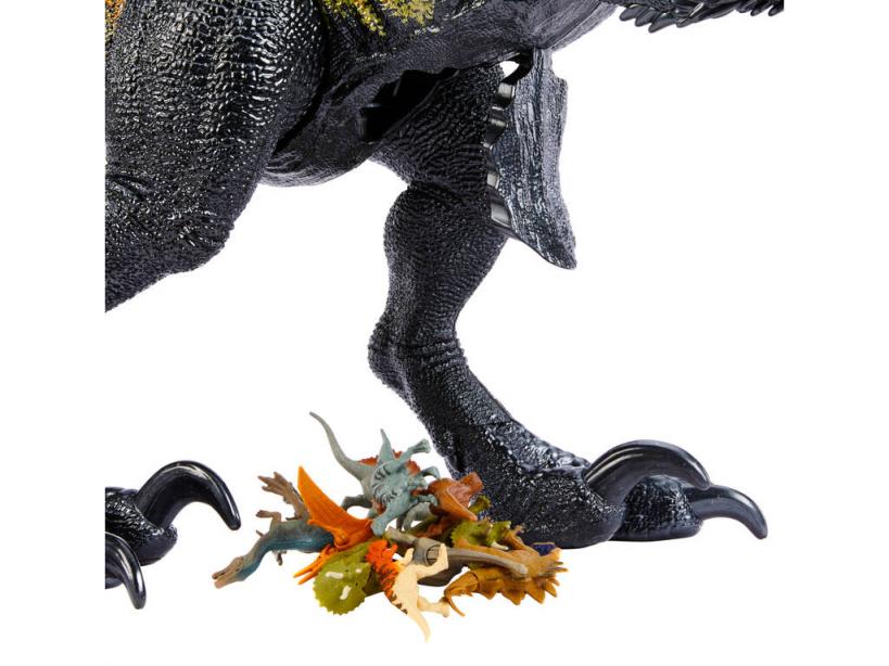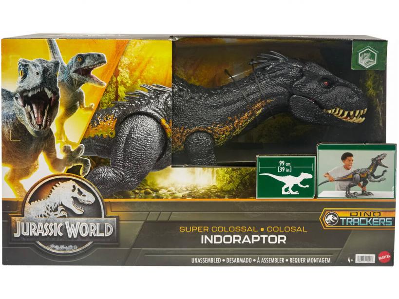 ¡Hazte con esta imponente figura del dinosaurio más temible! ¡Siembra el terror con Jurassic World Super Colosal Indoraptor Mattel!El temible y colosal Insoraptor se ha escapado del laboratorio y está hambriento. Su ferocidad y velocidad lo convierten en el dinosaurio más peligroso. Ten cuidado con sus fauces, el Indaraptor posee una poderosa mandíbula con la que puede tragarse todo tipo de criaturas. En su estómago oculta un compartimento para poder sacar los dinosaurios que devore (tiene capacidad aproximada de 20 figuras en miniatura de dinosaurios).Esta espectacular figura tienen todo tipo de detalles, tiene una piel escamosa de textura rugosa, sus colmillos y espinas de la cabeza son de un material blando y moldeable, además de que sus extremidades y mandíbula son articulables. ¡Si te apasionan los dinosaurios, échale un vistazo a nuestra página web y descubre toda la colección de Jurassic World!Edad recomendada: + de 4 años.Incluye: 1 figura del Super Colosal Indoraptor articulable con compartimento en el estómago.Colección: Jurassic World.Medidas aproximadas de la caja: 36 cm de alto x 61 cm de ancho x 15,50 cm de fondo.Medidas aproximadas del Super Colosal Indoraptor: 91 cm de alto x 40 cm de ancho x 11 cm de fondo.