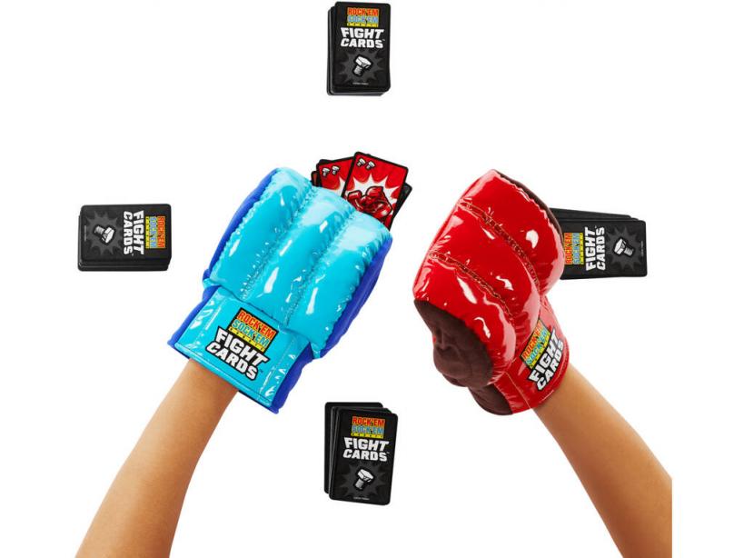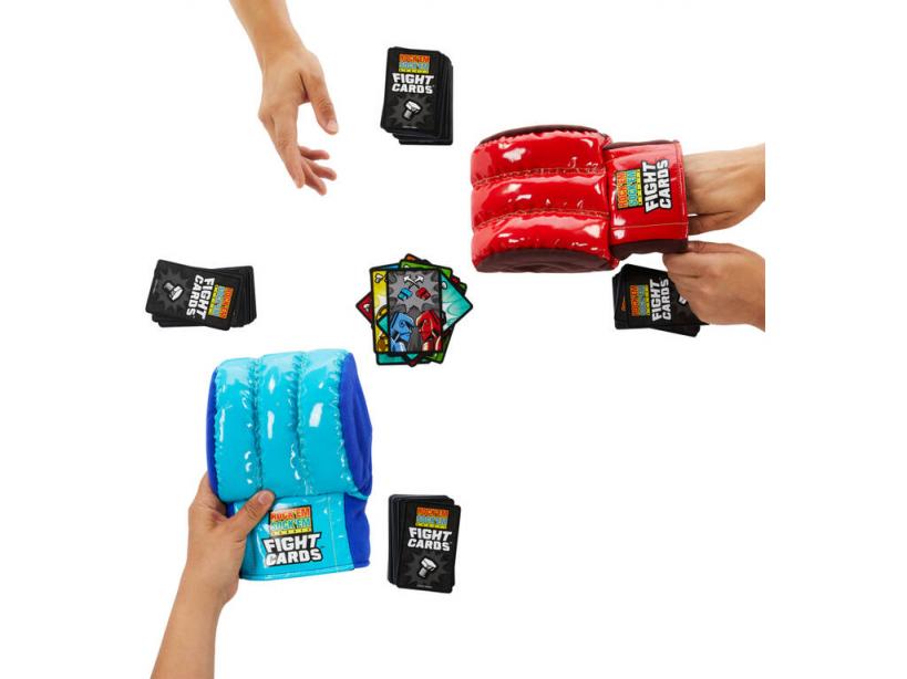 ¡Descubre una nueva forma de disfrutar del clásico juego de boxeo entre robots! ¡Hazte con este Rock’em Sock’em Robots Cartas de Lucha de Mattel!Tus reuniones familiares y fiestas con amigos nunca volverán a ser lo mismo, si te haces con este nuevo juego de cartas apasionante. El pack incluye dos guantes de boxeo que hay que ponerse, para jugar con las cartas de robots boxeadores. ¡Golpea, intercambia y mucho más! ¡Un juego sin igual para los fans de los juguetes retro y la diversión en general!Edad recomendada: 8 años o más.Número de jugadores: 2, 4 o 6 jugadores.Incluye: 1 caja de almacenaje ilustrada, 1 guante de color rojo, 1 guante de color azul, 112 cartas de juego 1 instrucciones de juego en varios idiomas.Medidas aproximadas de cada guante: 20 cm de largo, 12 cm de ancho y 5 cm de fondo.Medidas aproximadas de la caja de almacenaje: 27 cm de alto, 27 cm de ancho y 7 cm de fondo.
