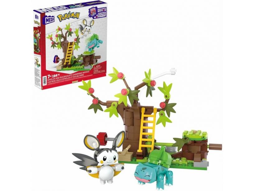 ¡Prepárate ara crear y jugar en el lugar más mágico del Mundo Pokémon! ¡Gracias a este Pokémon Mega El Bosque Encantador de Emolga y Bulbasaur de Mattel!Hazte con este divertido pack que incluye dos de tus Pokémon preferidos, que has de crear pieza a pieza, junto a un divertido escenario con piezas especiales que le dan movilidad a tus figuras. Disfruta de una aventura más genial gracias a estas casi 200 piezas llenas de color y que encajan a la perfección. ¡Esta y otras muchas aventuras de lo más creativas te esperan en nuestro gran surtido de packs Mega de Pokémon! ¡Echa un vistazo a nuestro amplio surtido web y disfruta de tu lado más creativo y pokemaniaco junto a las piezas más creativas!Edad recomendada: 7 años o más.Colección: Mega.Linea: Pokémon.Incluye: 1 figura construible de Bulbasaur, 1 figura construible de Emolga y 1 escenario construible con pieza especial para darle movimiento al escenario.Número total de piezas: 194 piezas.
