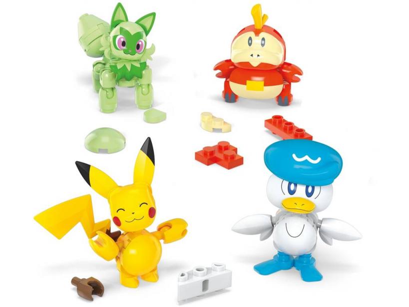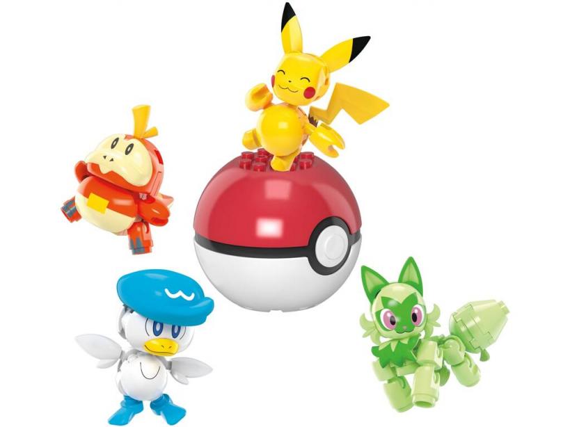 ¡Saca tu lado más creativo junto a las nuevos iniciales de la Novena Generación de Pokémon! ¡Con este Pokémon Equipo de la Región Paldea de Mattel!Disfruta junto Pikachu y sus nuevos amidos de la Región de Paldea, gracias a las famosos bloques Mega de Mattel. Disfruta de una aventura creativa llena de color, emoción y acción. ¡Recrea las batallas más épicas del Mundo Pokémon gracias a esta nueva y genial colección de figuras, bolas y escenarios llenos de detalles!¡Encuentra muchos más Pokémon de todas las generaciones y listos para ser construidos en nuestro gran surtido web!Edad recomendada: 6 años o más.Colección: Mega.Linea: Pokémon.Incluye: 1 figura construible Pikachu con partes articuladas, 1 figura construible Fuecoco con partes articuladas, 1 figura construible Quaxly con partes articuladas, 1 figura construible Sprigatito con partes articuladas y 1 bola Poke Ball.Medidas aproximadas de la bola: 5,5 cm de diámetro.